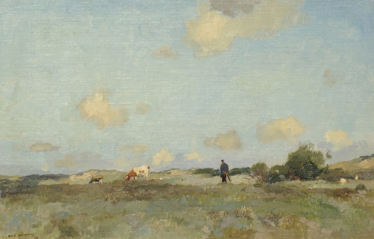Aris Knikker artwork • painting • previously for sale A farmer with grazing cattle in the dunes