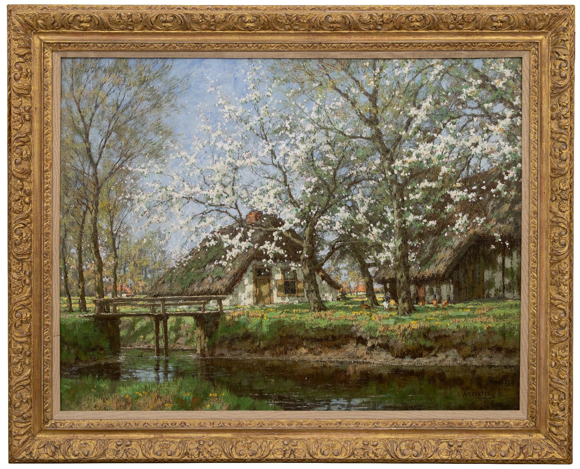 A.M. Gorter is a leading Dutch landscape painter who drew inspiration for his work from the Vechtstreek and areas in eastern Netherlands like Twente, the Achterhoek and Drenthe. He preferred painting tranquil nature in varying light conditions and in the changing colours of the seasons. In this aspect his work is similar to that of The Hague School of painting. His favourite seasons were autumn and early spring, while reflecting water and birch trees are recurring themes in his work. He was also an artistic advisor to Queen Wilhelmina and taught M.J. Bies and C.J. Dake Jr. among others.