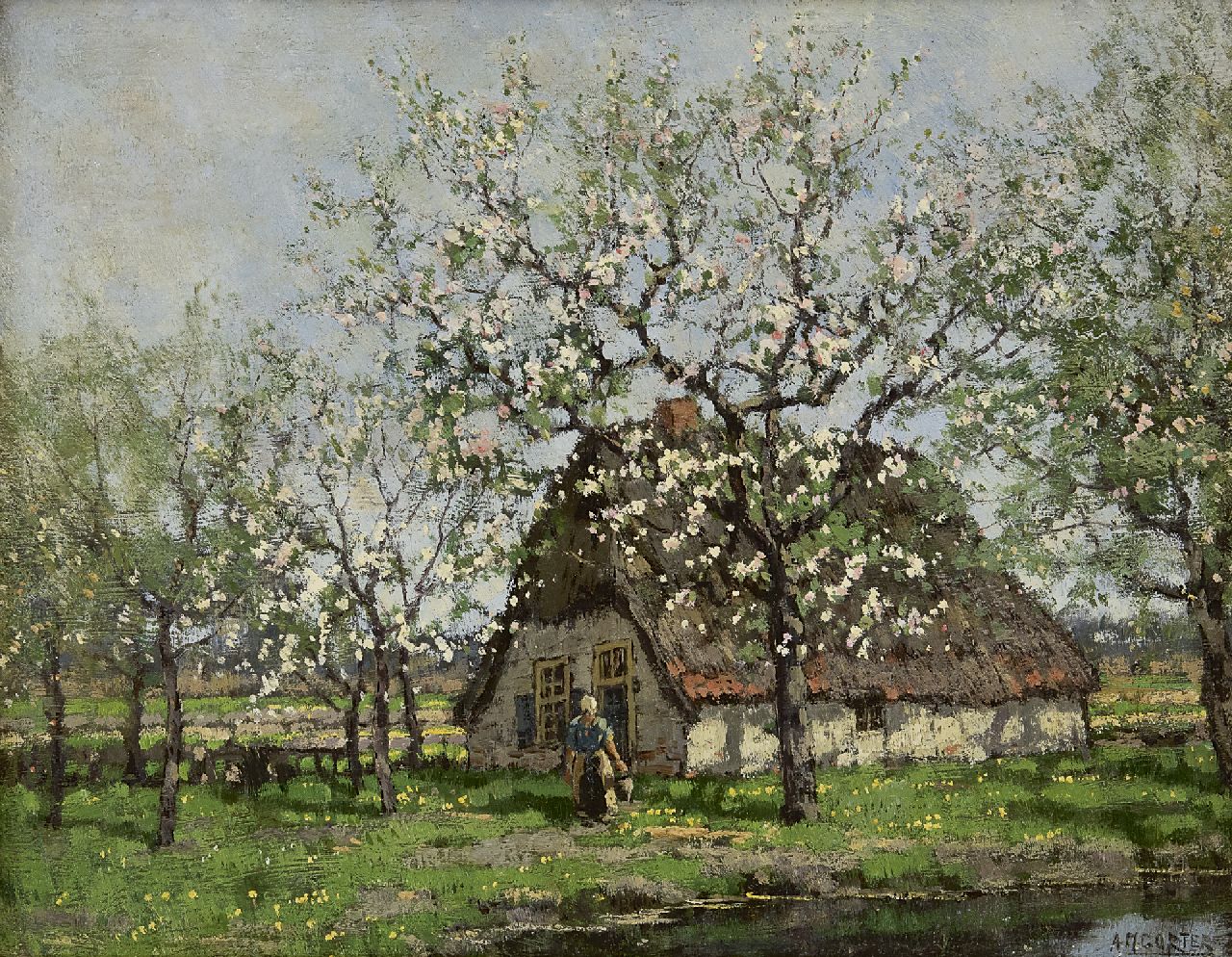 A.M. Gorter is a leading Dutch landscape painter who drew inspiration for his work from the Vechtstreek and areas in eastern Netherlands like Twente, the Achterhoek and Drenthe. He preferred painting tranquil nature in varying light conditions and in the changing colours of the seasons. In this aspect his work is similar to that of The Hague School of painting. His favourite seasons were autumn and early spring, while reflecting water and birch trees are recurring themes in his work. He was also an artistic advisor to Queen Wilhelmina and taught M.J. Bies and C.J. Dake Jr. among others.