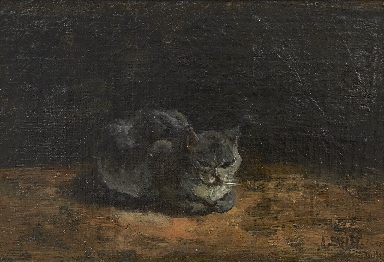 Arthur Briët artwork • painting • previously for sale Sleeping grey cat