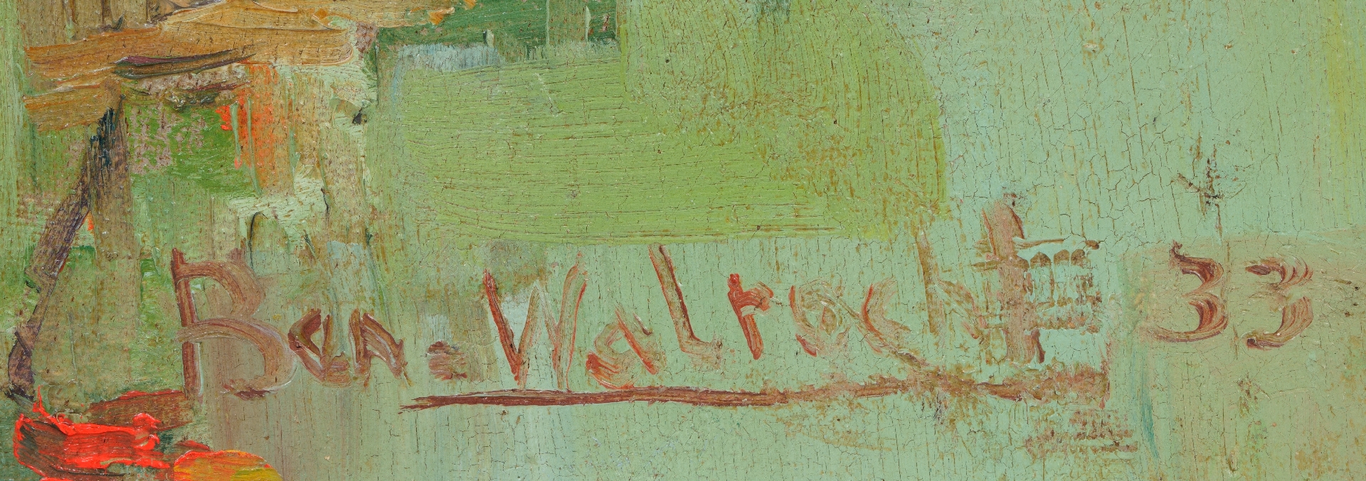 Ben Walrecht is one of the painters who joined the Groninger Ploeg in the 1930s. He was originally an advertising designer and also devoted himself to painting Groningen cityscapes, portraits and landscapes. His motives, smooth impressionism and free use of color matched those of the Ploeg members and in 1936 he therefore became a member of this group of artists. Walrecht's passion for water led to the purchase of a ship, on which he eventually went to live and with which he sailed through Friesland in the summer with Martens and Dijkstra.