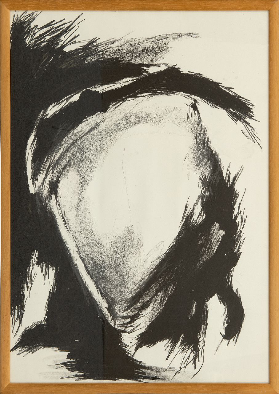 pencil, charcaol, and bodycolour on paper 74.5 x 55.0 cm, signed l.m. and dated '87