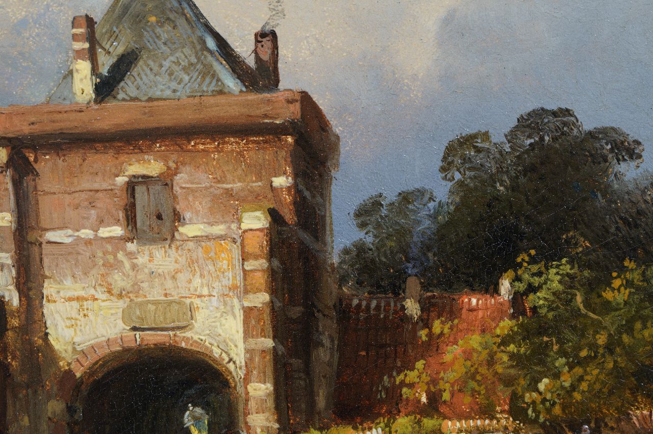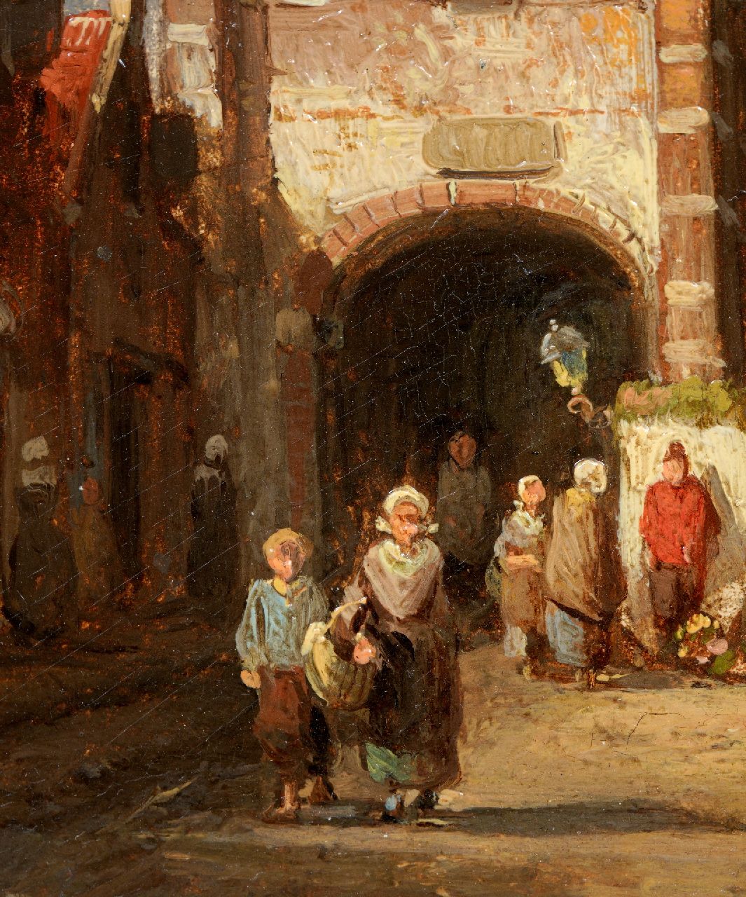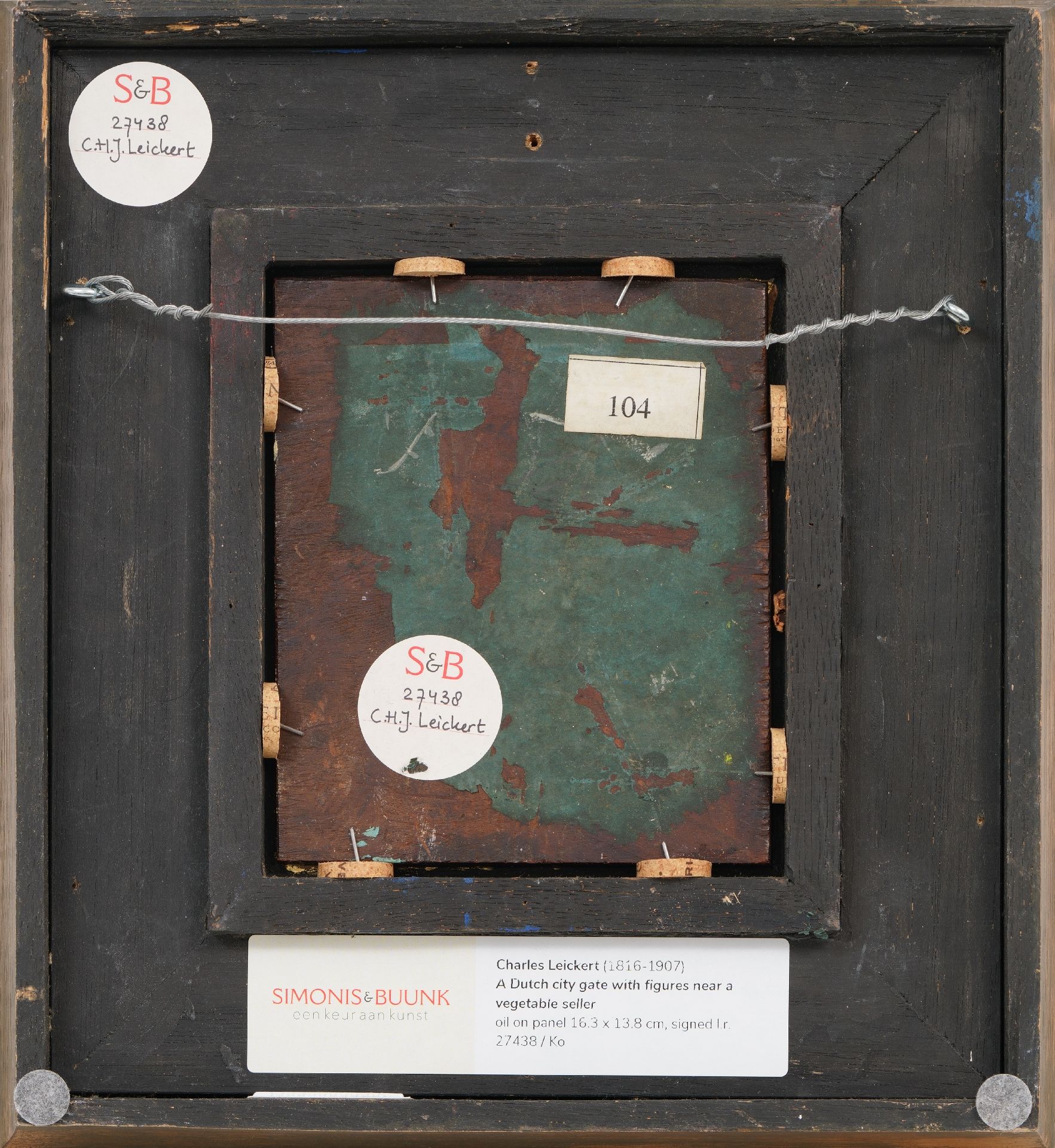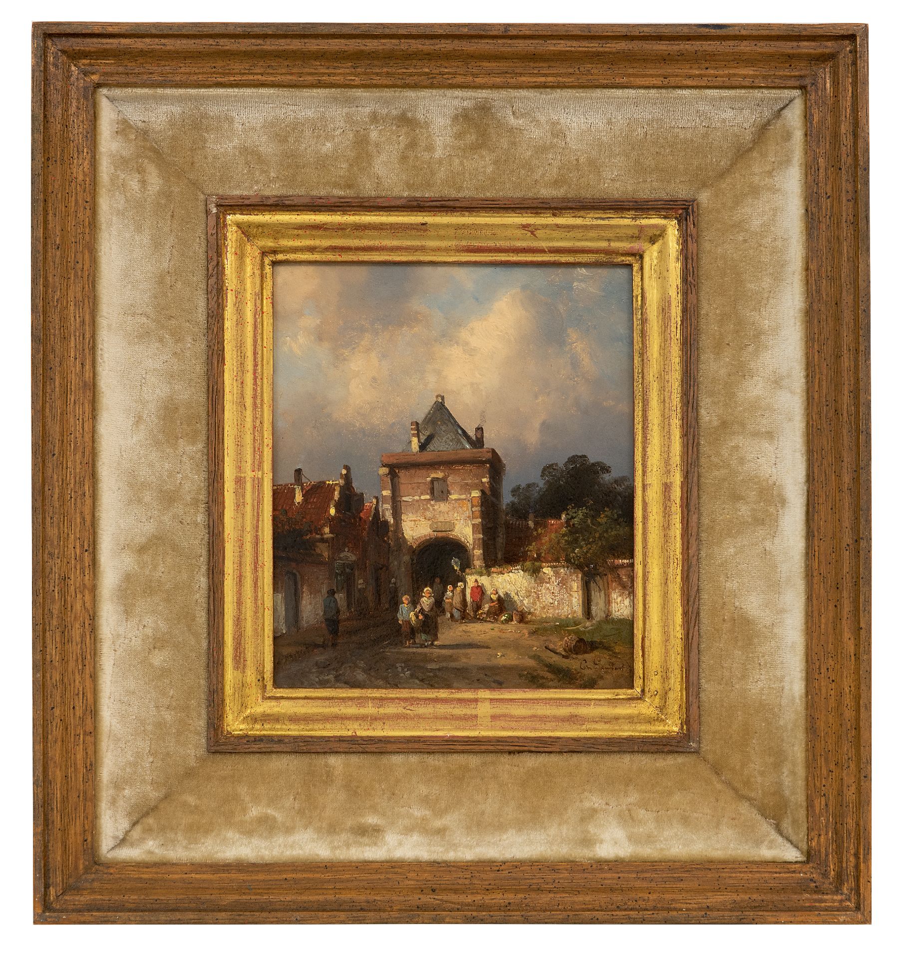 Charles Leickert artwork • painting • for sale A Dutch city gate with figures near a vegetable seller