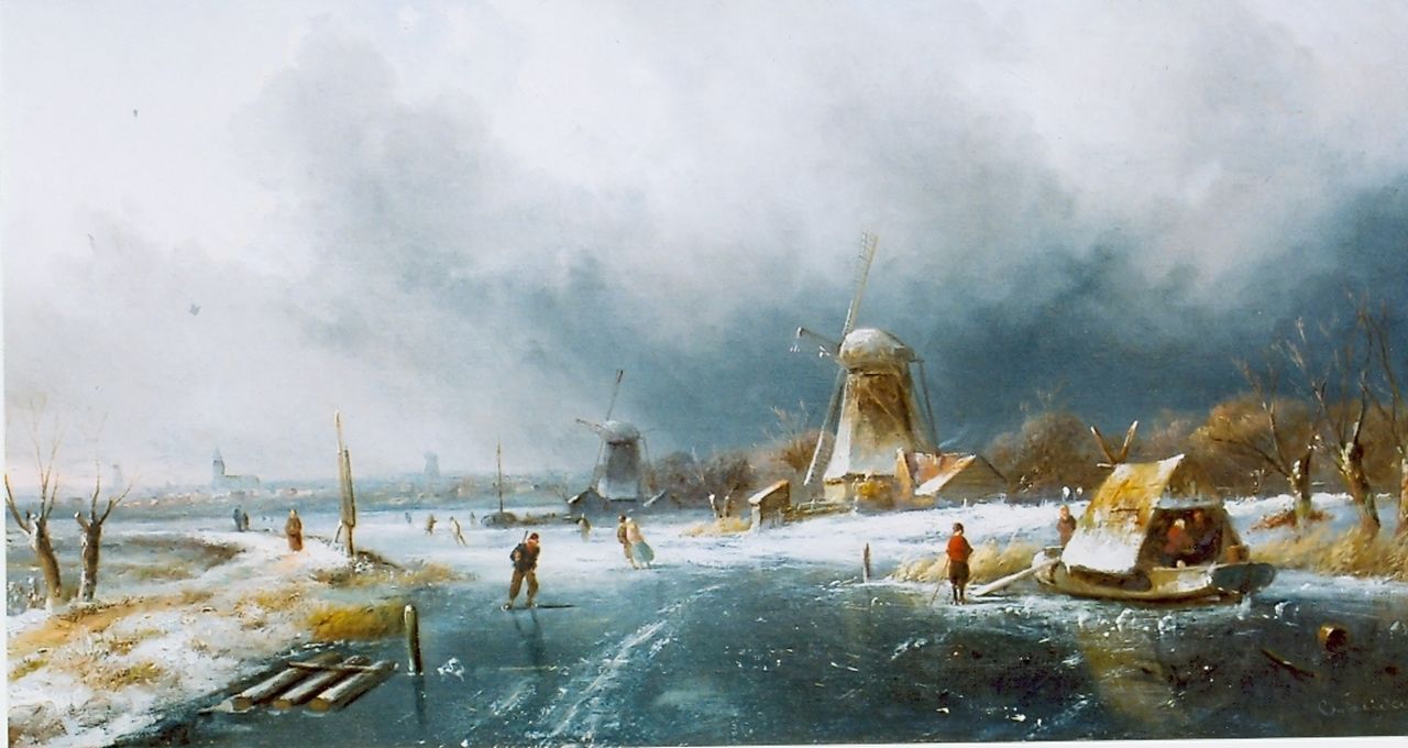 Charles Leickert artwork • painting • previously for sale Skaters on a frozen waterway