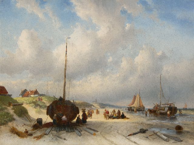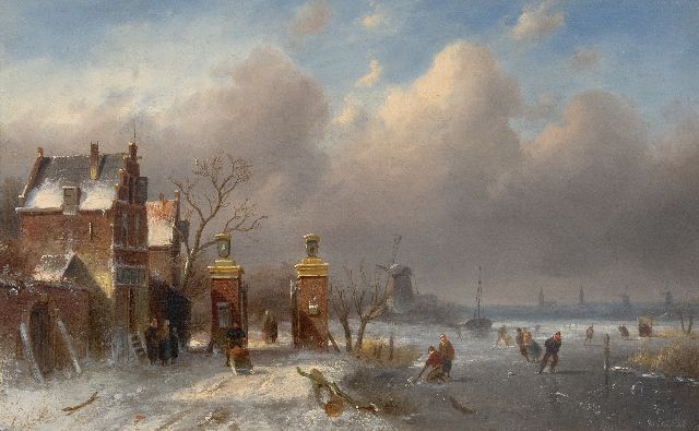 Charles Leickert was briefly a student of W.J.J. Nuijen and from 1839 by Andreas Schelfhout. This latter master in particular had a great deal of influence on his work. Leickert painted beautiful Dutch ice scenes, summer landscapes and river views in which he incorporated all kinds of motifs from his sketchbooks. After 1845 he also painted beach scenes and cityscapes. The appeal of his paintings is partly determined by the lighting and strongly narrative details. Leickert was a true craftsman, who was able to represent the right mood in a clever way and thus sensed the taste of the audience. His winter faces are really cold, his summers sunny and green.