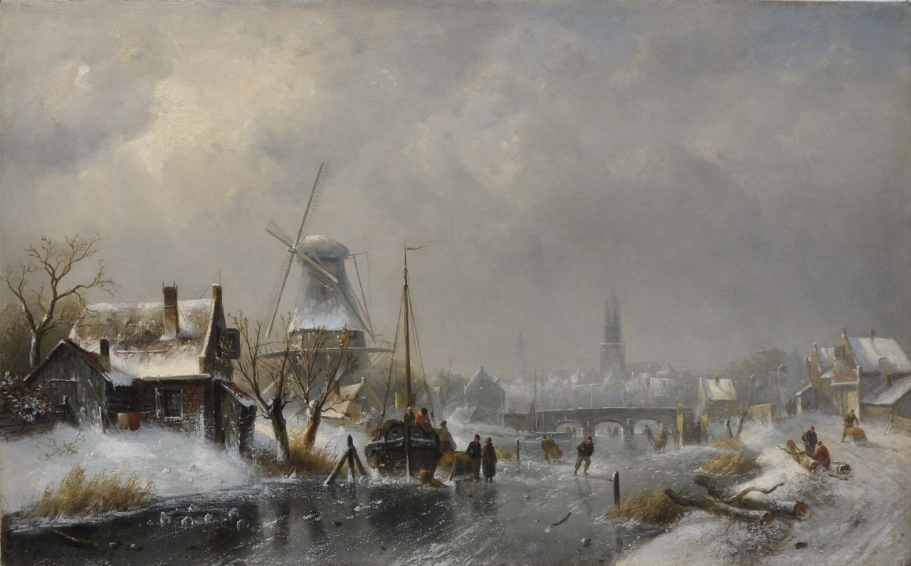 Charles Leickert was briefly a student of W.J.J. Nuijen and from 1839 by Andreas Schelfhout. This latter master in particular had a great deal of influence on his work. Leickert painted beautiful Dutch ice scenes, summer landscapes and river views in which he incorporated all kinds of motifs from his sketchbooks. After 1845 he also painted beach scenes and cityscapes. The appeal of his paintings is partly determined by the lighting and strongly narrative details. Leickert was a true craftsman, who was able to represent the right mood in a clever way and thus sensed the taste of the audience. His winter faces are really cold, his summers sunny and green.