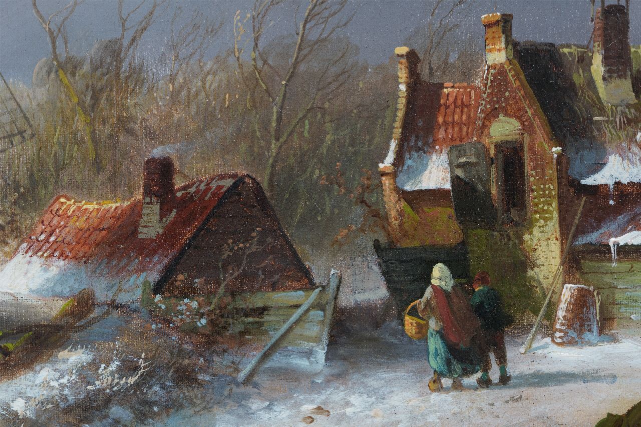 Charles Leickert artwork • painting • previously for sale Winterlandscape with skaters and windmill