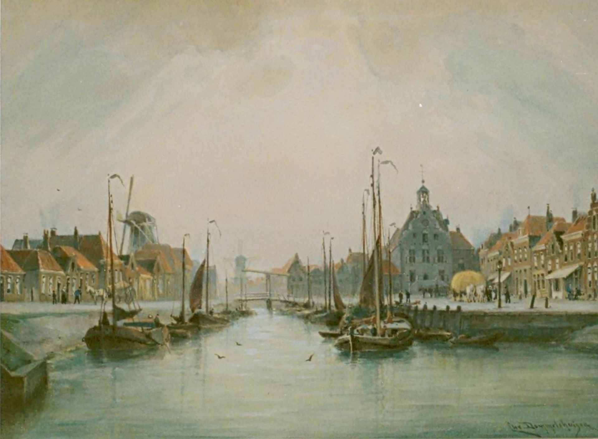 Christiaan Dommelshuizen was a real globetrotter, living and working not only in his native Holland but also in Belgium, France, Great Britain and the United States. Specialized in painting marine landscapes and historical townscapes, his artistic talent was evident from an early age. After the death of their mother, Cornelis Christiaan and his brother Pieter Cornelis, also a gifted and successful painter, moved to England, probably in 1861, where they were in high demand. He used varying signatures, including ‘C.C. Dommershuizen’ and ‘Dommelshuizen’.