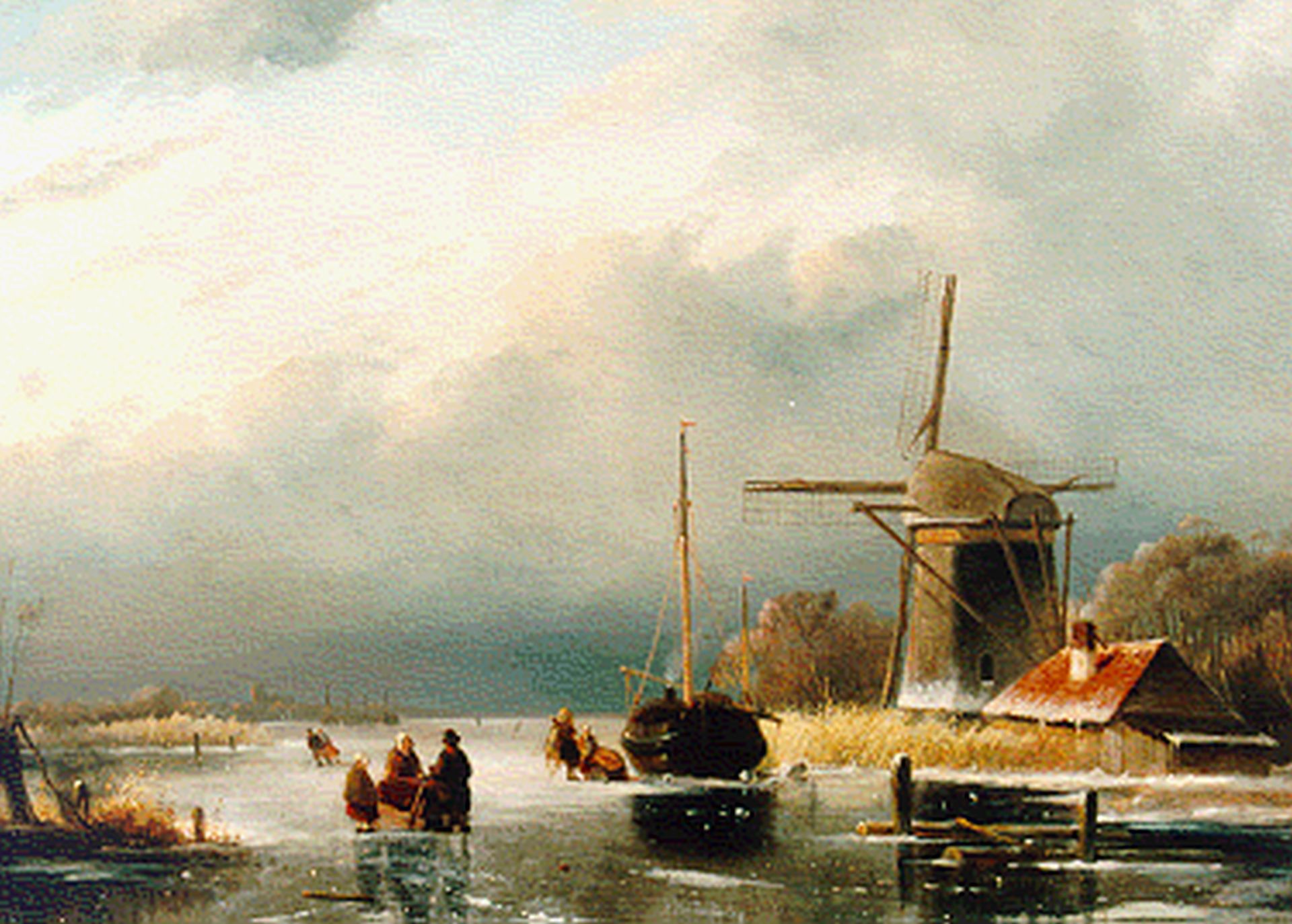 Cornelis Petrus 't Hoen artwork • painting • previously for sale A winter landscape with skaters by a windmill