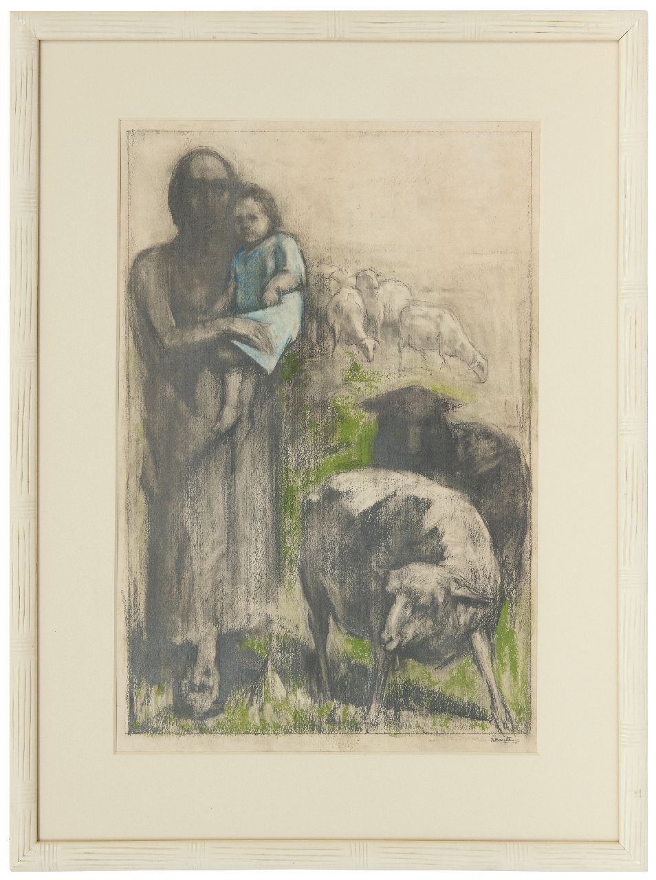 David Bautz artwork • watercolour • drawing • for sale A shepherd with a child