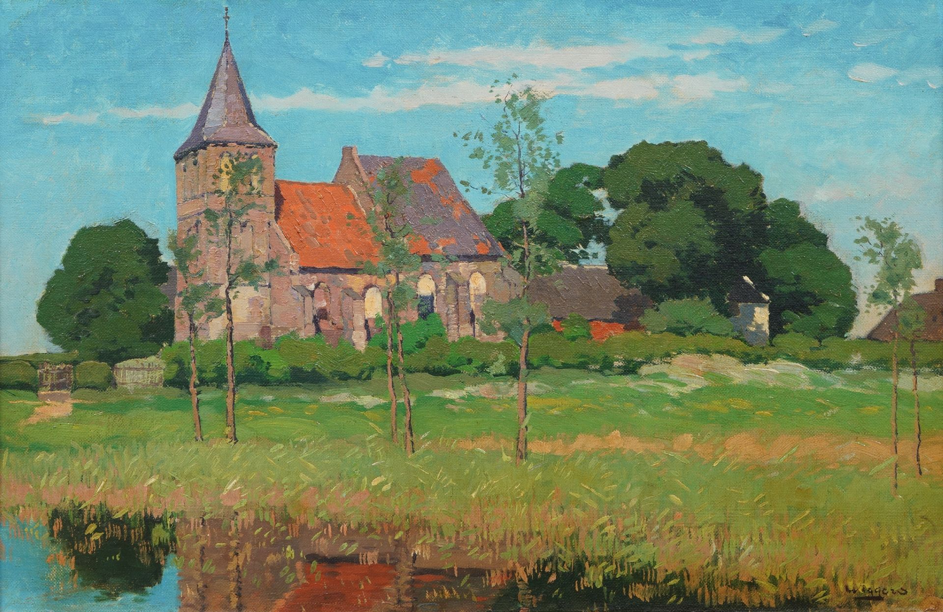 Derk Wiggers artwork • painting • for sale Landscape with the church of Persingen
