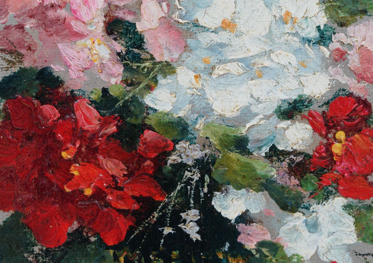 Eugène-Henri Cauchois was born in Rouen in 1850 and died in Paris in 1911. After completing his apprenticeship with Alexandre Cabanel, a famous painter in those days, Cauchois went on to become popular as a painter of flower still lifes. He made his début at the Paris Salon at the age of 24 and received numerous accolades for his work. Towards the end of his life, Cauchois also worked as a decorative painter. He painted flower still lifes representing the four seasons to adorn the walls of a school in the VIIth arrondissement of Paris.