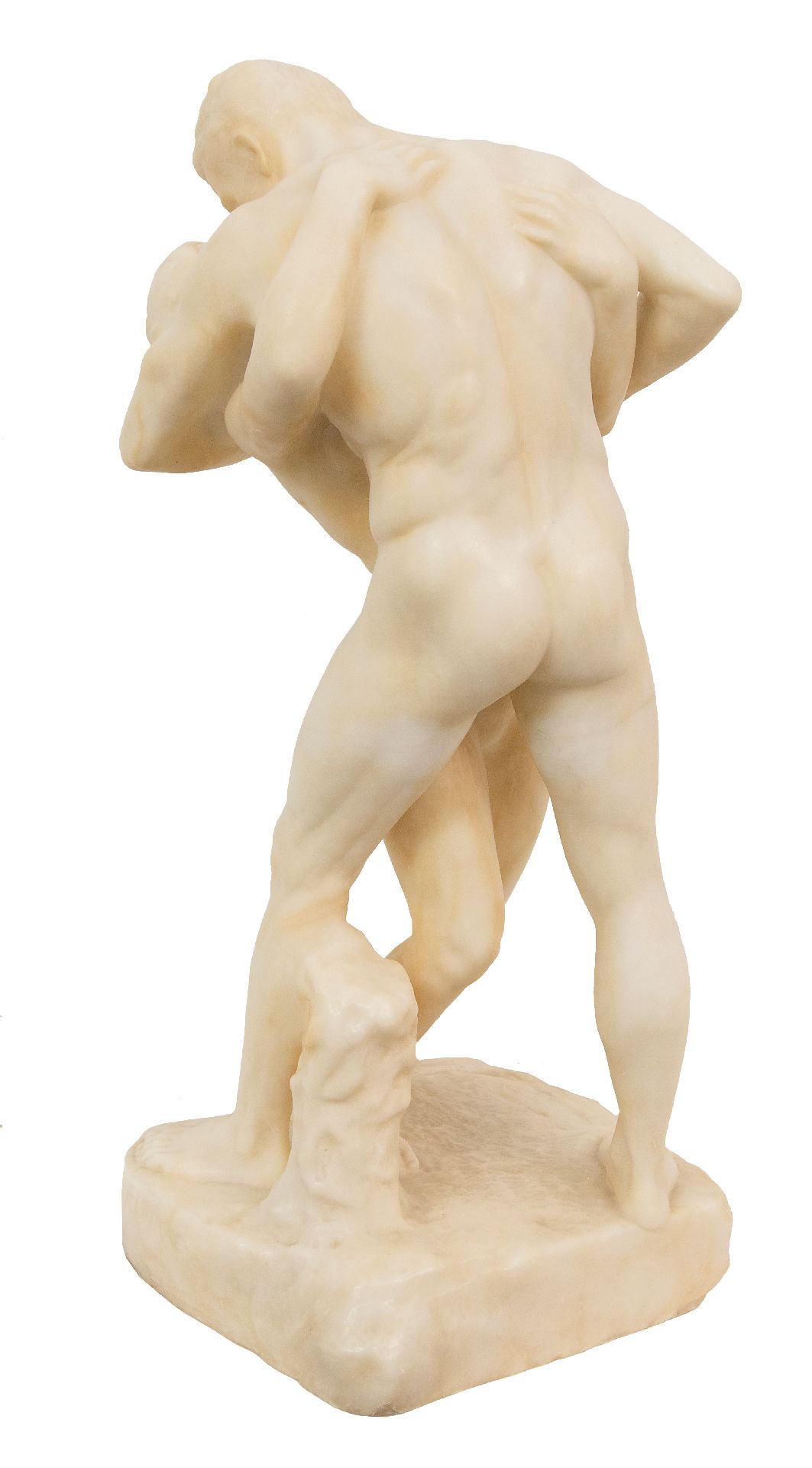 Sculptor Ferdinand Lepcke became known for his graceful female nudes, which were considered the ideal plastic creation of 'beauty in the form of the unveiled female body.' Initially, he created these works in the neo-Baroque style of the Berlin School, and from the 1890s onward, in the Art Nouveau style. He studied at the Berlin Academy of Fine Arts and at the age of 27 received a scholarship from the Prussian Academy of Fine Arts to study in Rome. Even during his time at the academy, Lepcke began making 'salon bronzes' for sale on the art market. For this, he used plaster models and casts in various sizes and materials. Portrait busts and monumental sculptures were also part of his regular repertoire. Among his most acclaimed salon sculptures are the kissing and embracing couples, a series of which won awards at the 1904 World's Fair in St. Louis.