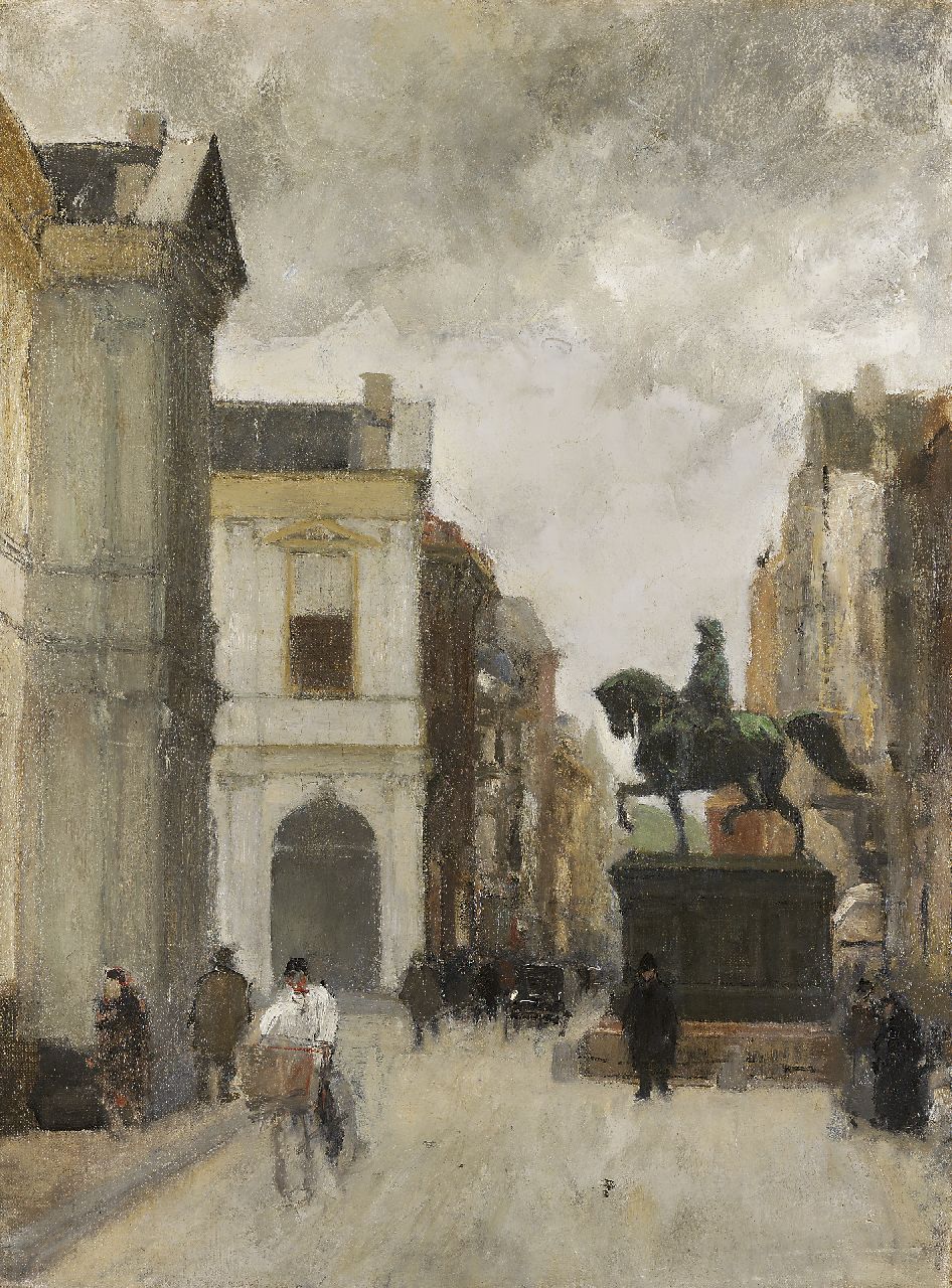Floris Arntzenius artwork • painting • previously for sale Noordeinde, The Hague, with statue of Prince Willem I