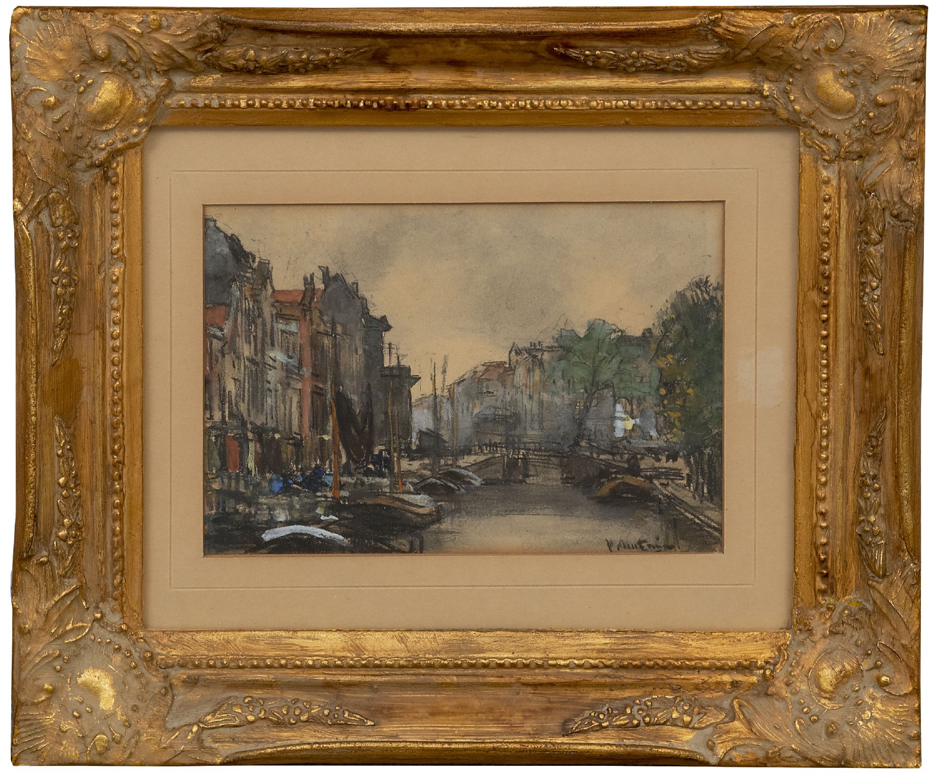 Floris Arntzenius artwork • watercolour • drawing • previously for sale View on a Dutch canal