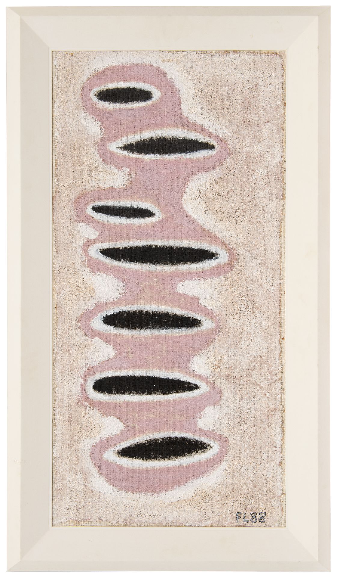 oil and sand on canvas 90.6 x 44.4 cm, signed l.r. with initials and dated '88