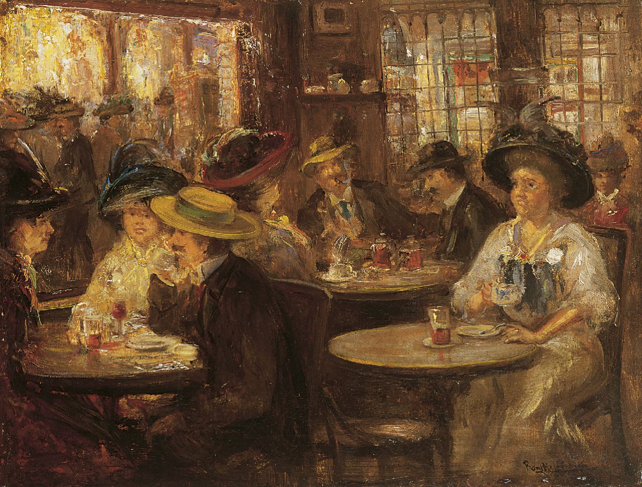 Frans Helfferrich artwork • painting • previously for sale Tea-time, 'Het Goude Hooft', The Hague