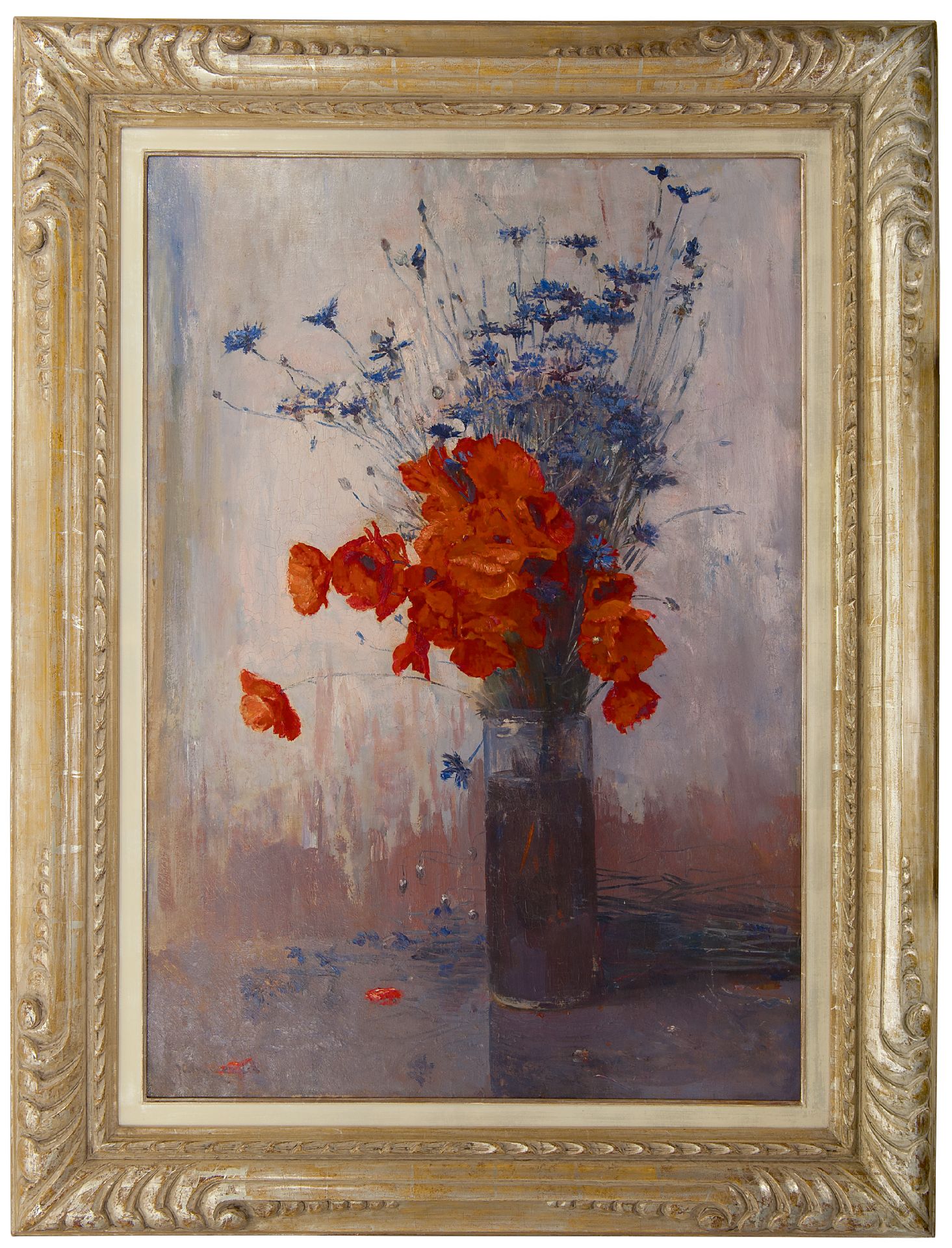Frans Oerder artwork • painting • for sale Poppies and cornflowers in a high vase