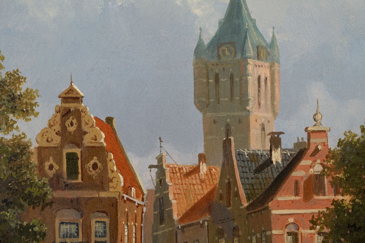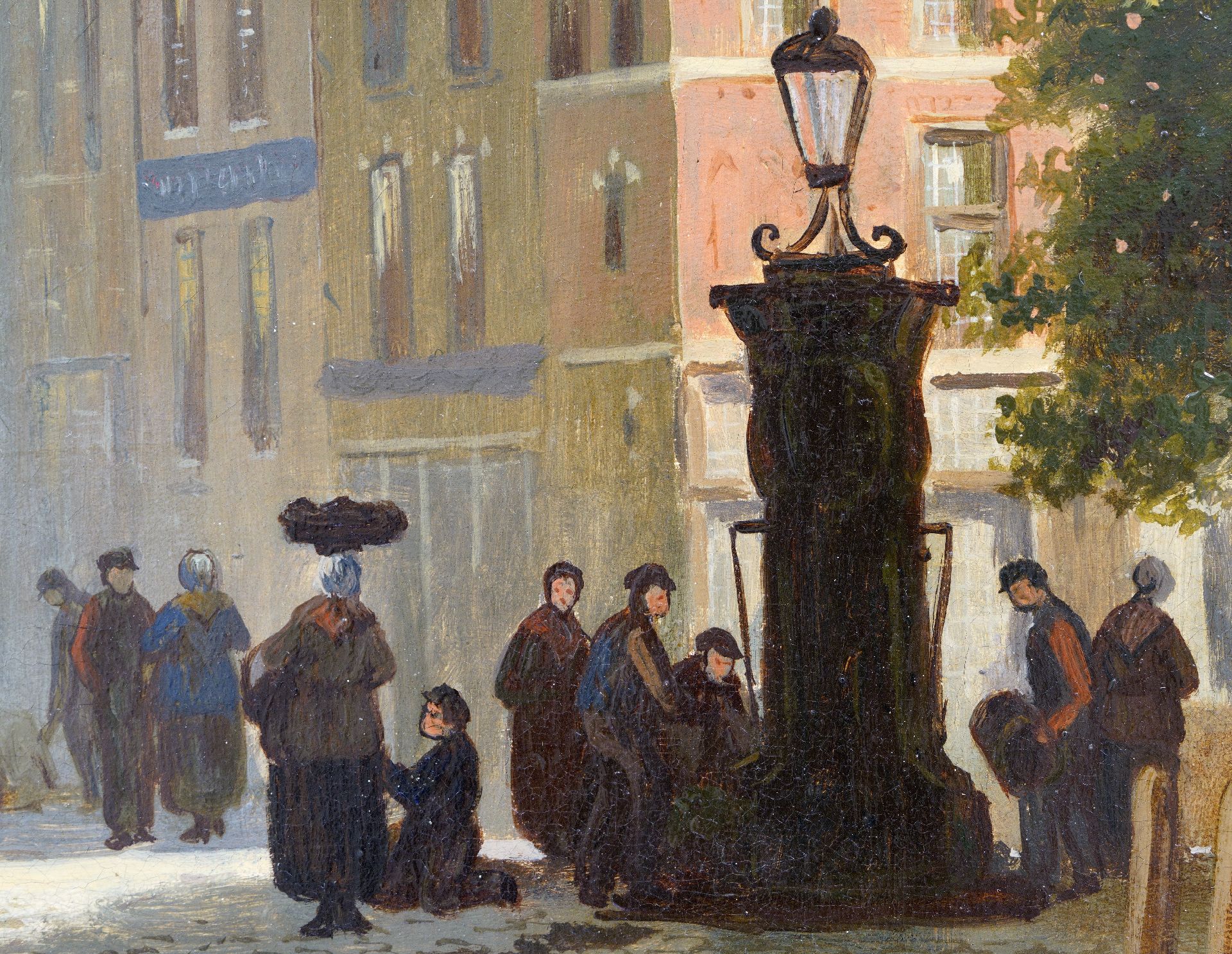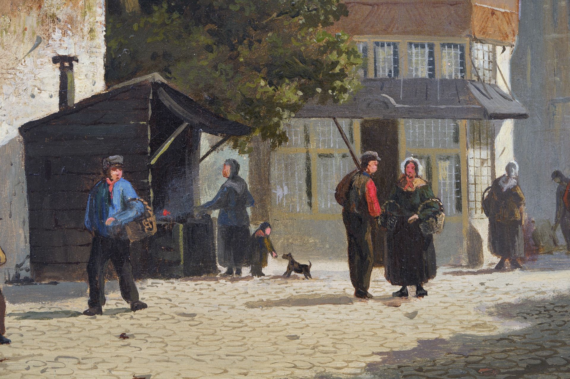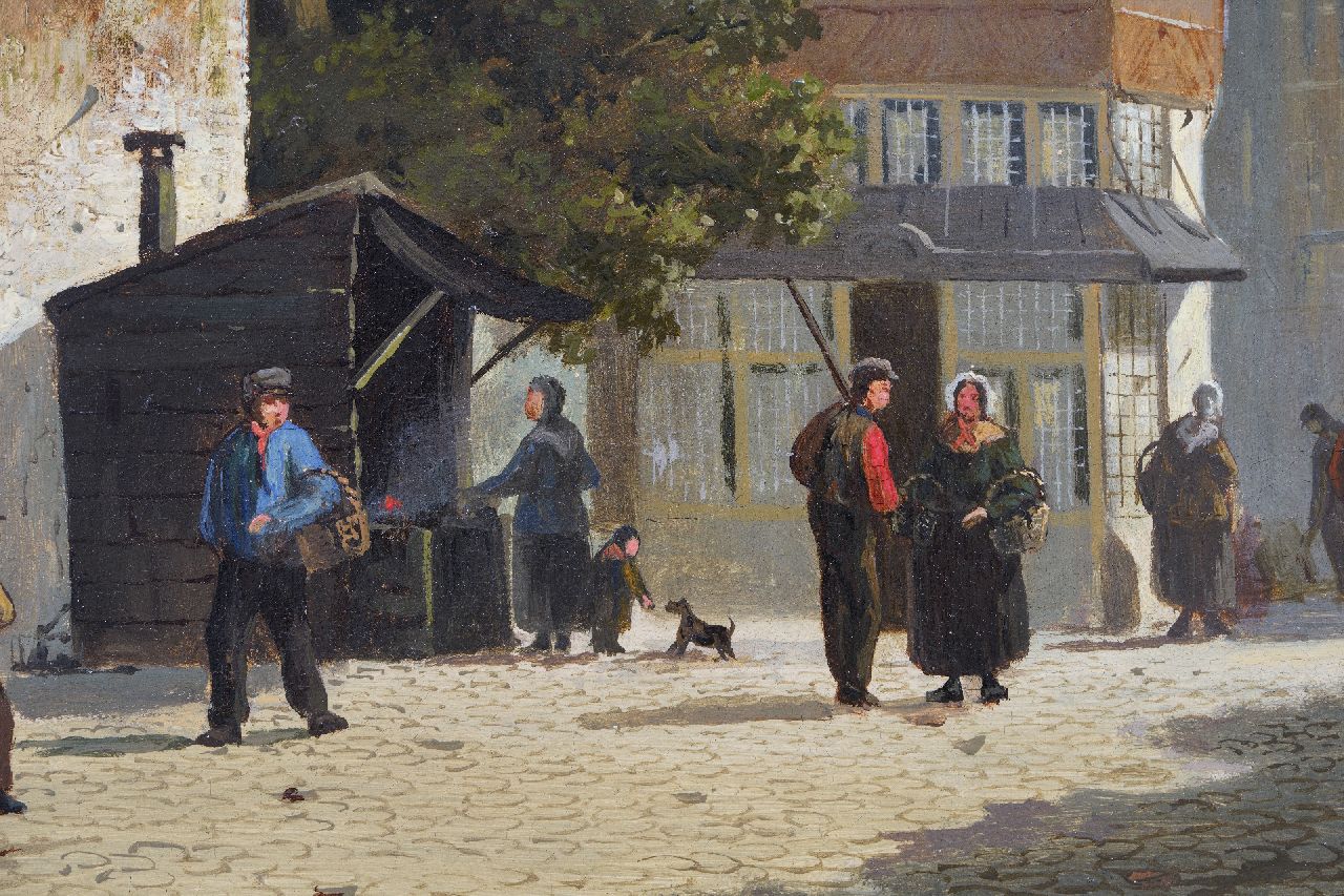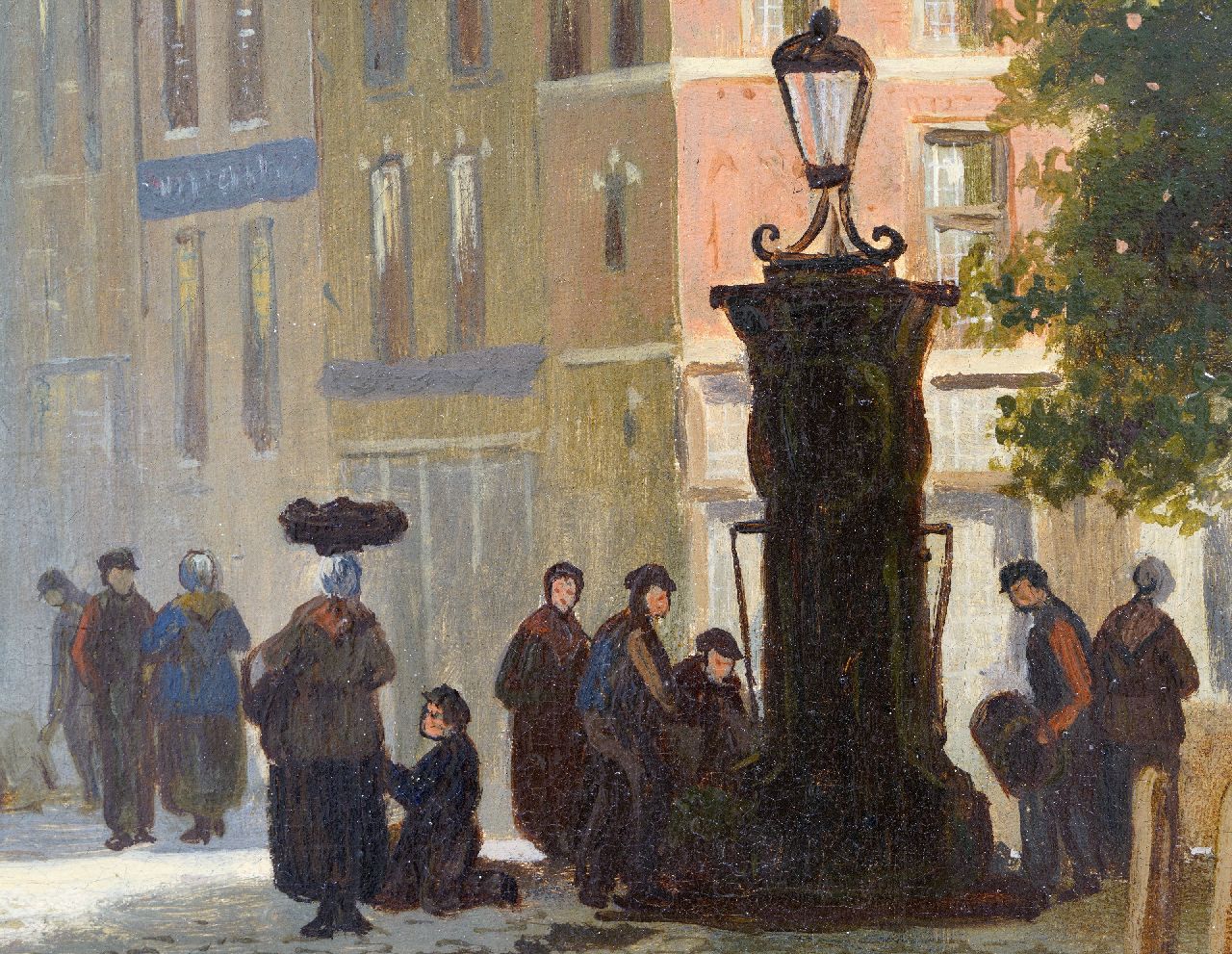 Little is known about Frederik Roosdorp except that he was born in Amsterdam in 1839 and specialised in painting sun-drenched, animated urban scenes. His training is likewise undocumented, but his work contains all the characteristic features of the romantic townscapes that developed as a genre in Holland and especially Amsterdam between 1830 and 1850, with meticulous execution, strong contrasts between light and shadow and an eye for traditional Dutch architecture. One of the leading exponents of this genre was Cornelis Springer, and like him Roosdorp painted both imaginary and topographically correct urban views. As he died at a young age, Roosdorp left only a small oeuvre.