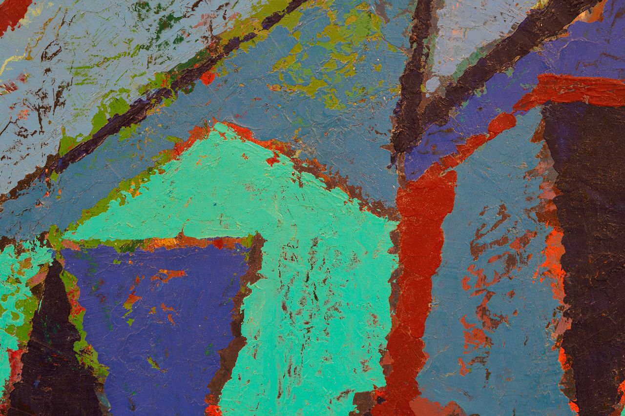 Frieda Hunziker was considered a remarkable and progressive artist in the 1950s and 1960s. Initially, she was a drawing teacher until she started painting freely herself in the 1930s. Her early work is characterized by a simplified, realistic style. In 1948 she came to complete abstraction. The year before, Hunziker was one of the founders of Vrij Beelden. This group of artists regularly exhibited in the Stedelijk Museum in Amsterdam and took place alongside the Experimentals and Cobra in the pursuit to non-figuration. Hunziker was the only woman in the group and also one of the most active members.