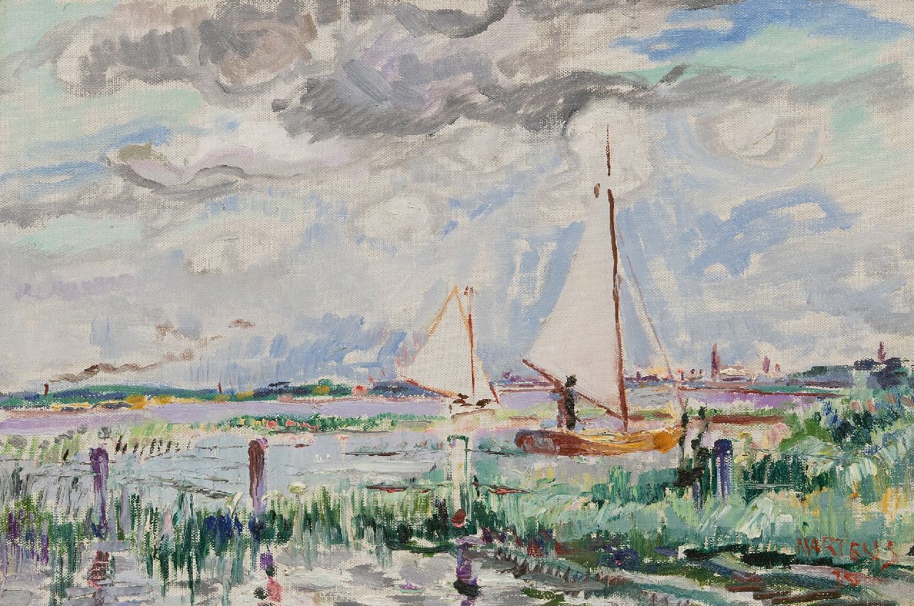 George Martens was among the founders of the Groningen artists' collective De Ploeg in 1918. Already an established name at the time, he enjoyed particular success as a portraitist. Influenced by artists like Jan Wiegers, he adopted a more rapid and immediate technique, with a free and lavish use of colour. Martens depicted a diverse range of subjects: the city of Groningen, landscapes, still lifes, portraits, figural studies and his signature scenes of fairs and circuses. Boats were another favourite subject. After 1929 his work becomes less wild in character, with the alternating use of a palette knife and brush to produce a smooth paint surface. Aside from paintings, Martens also made posters, woodcuts and tapestry designs.