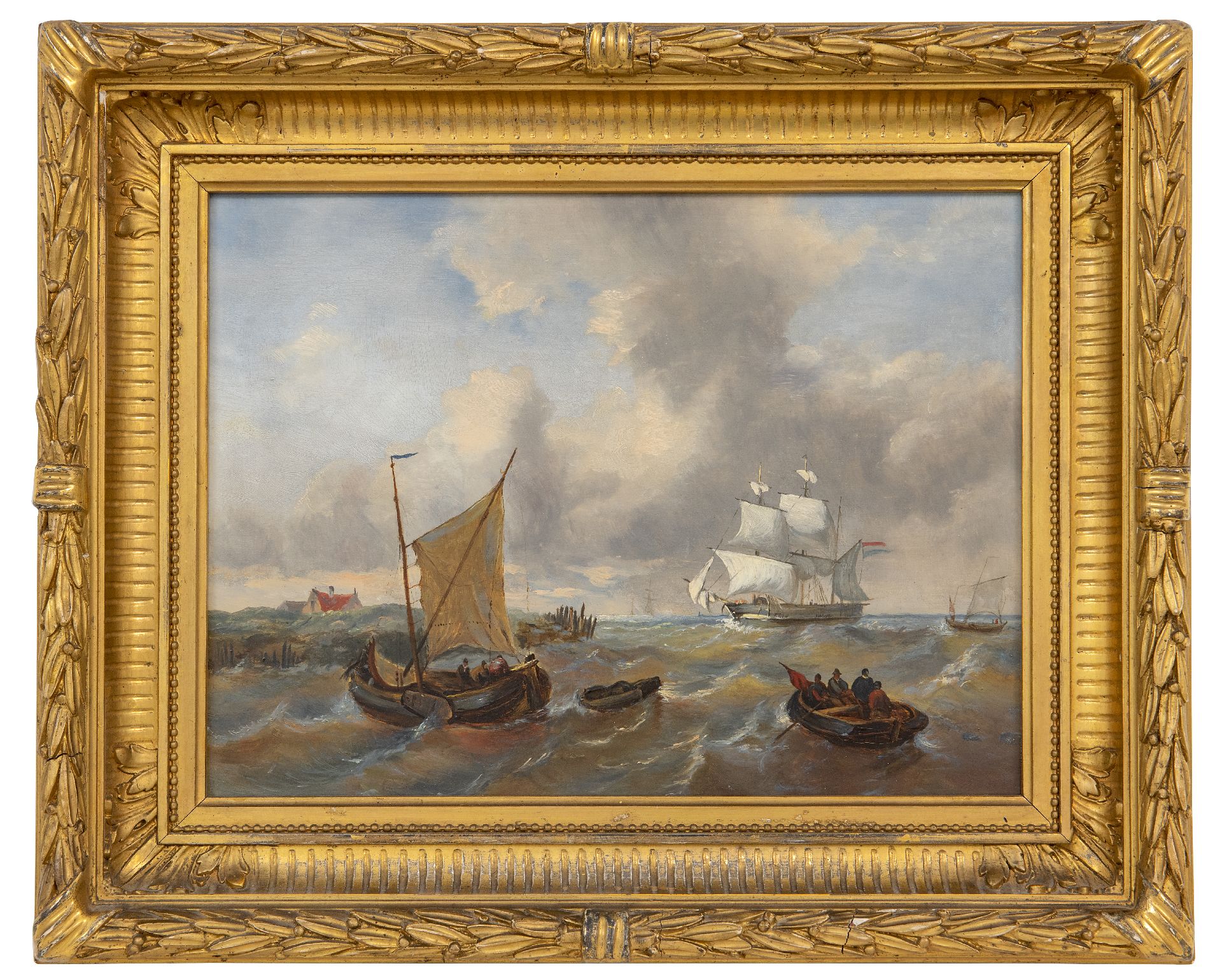 George Willem Opdenhoff (toegeschreven aan) artwork • painting • for sale Sailing vessels off the coast in rough weather