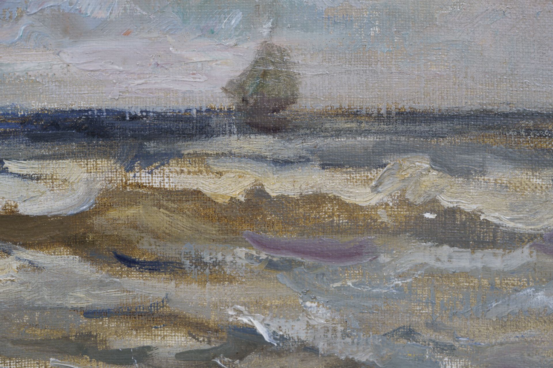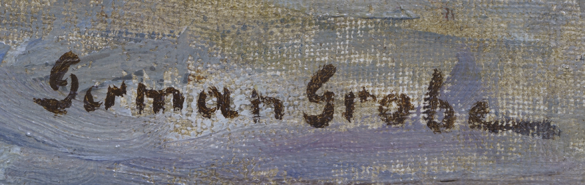 The German painter German Grobe attended the Akademie in Düsseldorf, where his instructors included the sea painter E.G. Ducker. He went on to become a part of the Düsseldorf School of landscape painters. From 1887 onwards he spent every summer in the Dutch fishing village of Katwijk, where he captured village life, beach scenes and the lives of the local fishers in his paintings. His impressionistic, often sketch-like style and unity of tone reveal the influence of painters from the Hague School, particularly Mauve and Mesdag.