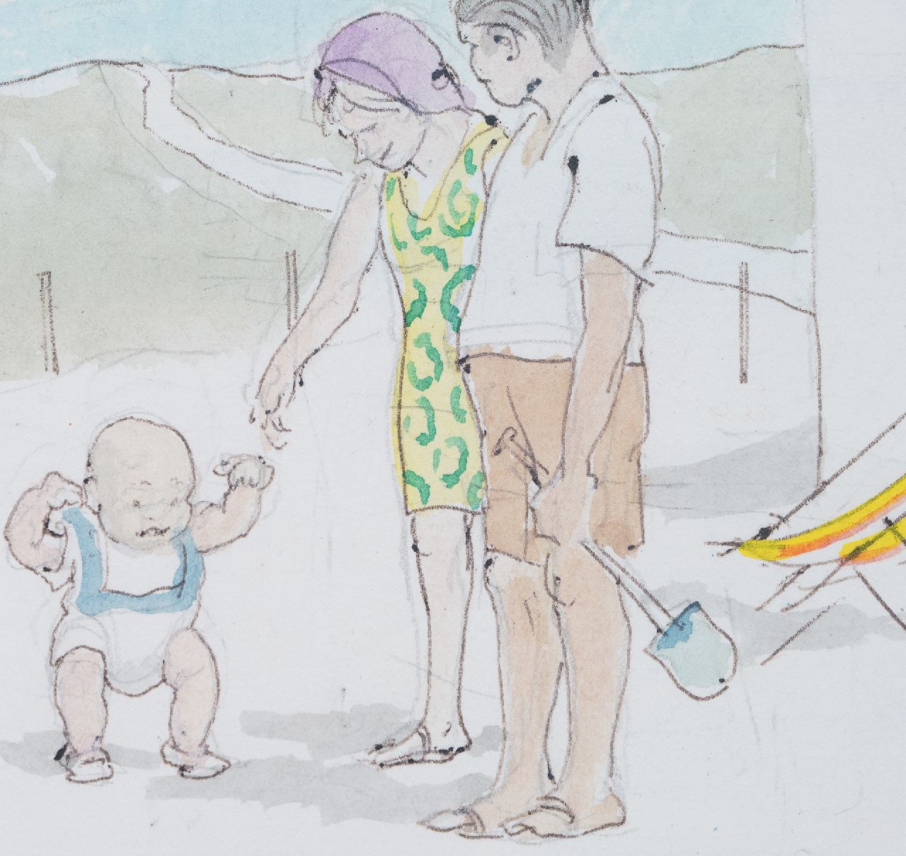 Harm Kamerlingh Onnes artwork • watercolour • drawing • for sale The first steps on the beach