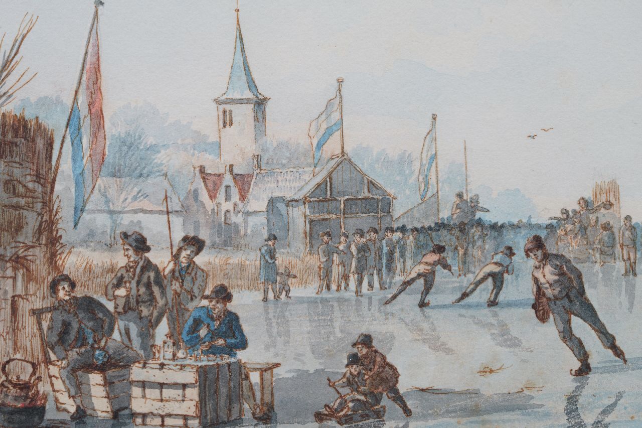 Hendrik Gerrit ten Cate artwork • watercolour • drawing • for sale Gathering at a skating competition