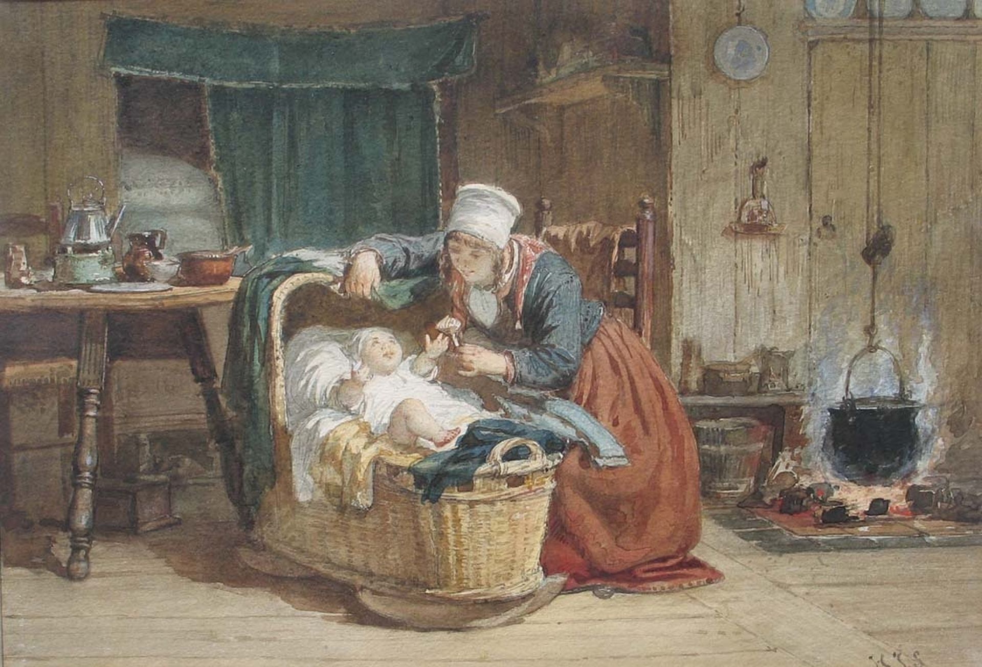 Hendrik Jacobus Scholten artwork • watercolour • drawing • previously for sale A woman from Marken with her baby