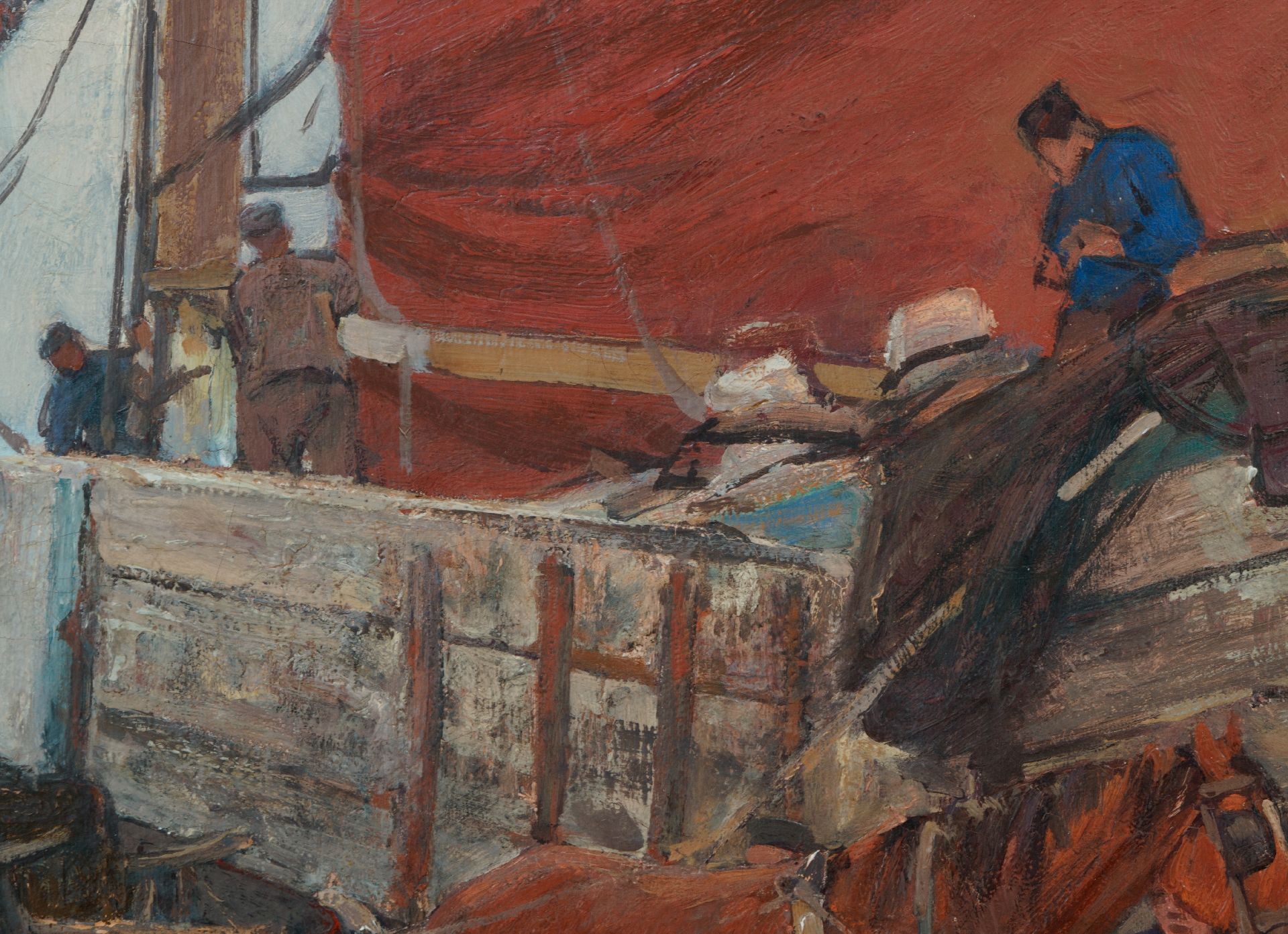 Hendrik Willebrord Jansen is one of the artists who were famous in the early 19th century and then faded into the background due to the innovations in painting. He was chairman of the respected Arti et Amicitiae for several years, exhibited at home and abroad and was admired for his modern method and technique for the time. His oeuvre includes impressionistic summer and winter landscapes, river views with ships and cityscapes. From 1892 to 1907, the painter lived in Amsterdam, where he spent a lot of time on the water painting city corners, harbours, docks and wharves. With his wife, the painter Sophie Grothe, he frequently visited Katwijk, especially after 1902. There, the village and the fisherman's life on the beach were popular subjects.