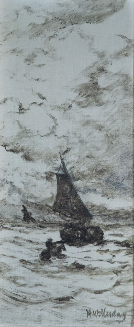 H.W. Mesdag was the seascape painter of The Hague School. He chose the painting profession relatively late in life. Having first lived in Oosterbeek and Brussels he settled in The Hague in 1869, where he was instantly captivated by the beach, sea and lives of the fishermen in nearby Scheveningen. Using quick, informal brushstrokes and an infinite variety of browns, golds and greys he applied these motifs to the canvas. Mesdag produced a large body of work, as if wanting to make up for his lost time. His work was very popular in France and won awards at the Paris Salon on more than one occasion.