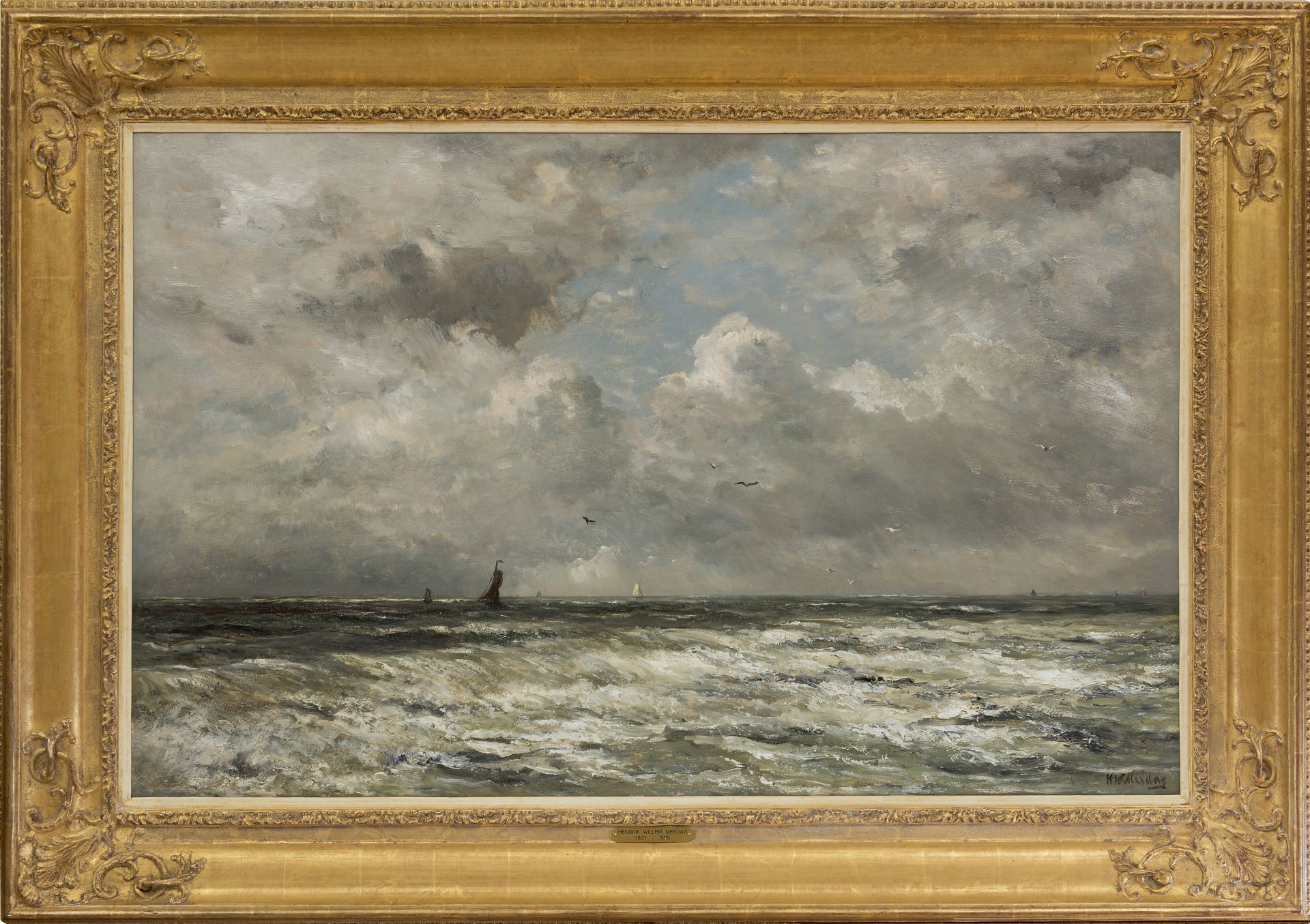 H.W. Mesdag was the seascape painter of The Hague School. He chose the painting profession relatively late in life. Having first lived in Oosterbeek and Brussels he settled in The Hague in 1869, where he was instantly captivated by the beach, sea and lives of the fishermen in nearby Scheveningen. Using quick, informal brushstrokes and an infinite variety of browns, golds and greys he applied these motifs to the canvas. Mesdag produced a large body of work, as if wanting to make up for his lost time. His work was very popular in France and won awards at the Paris Salon on more than one occasion.