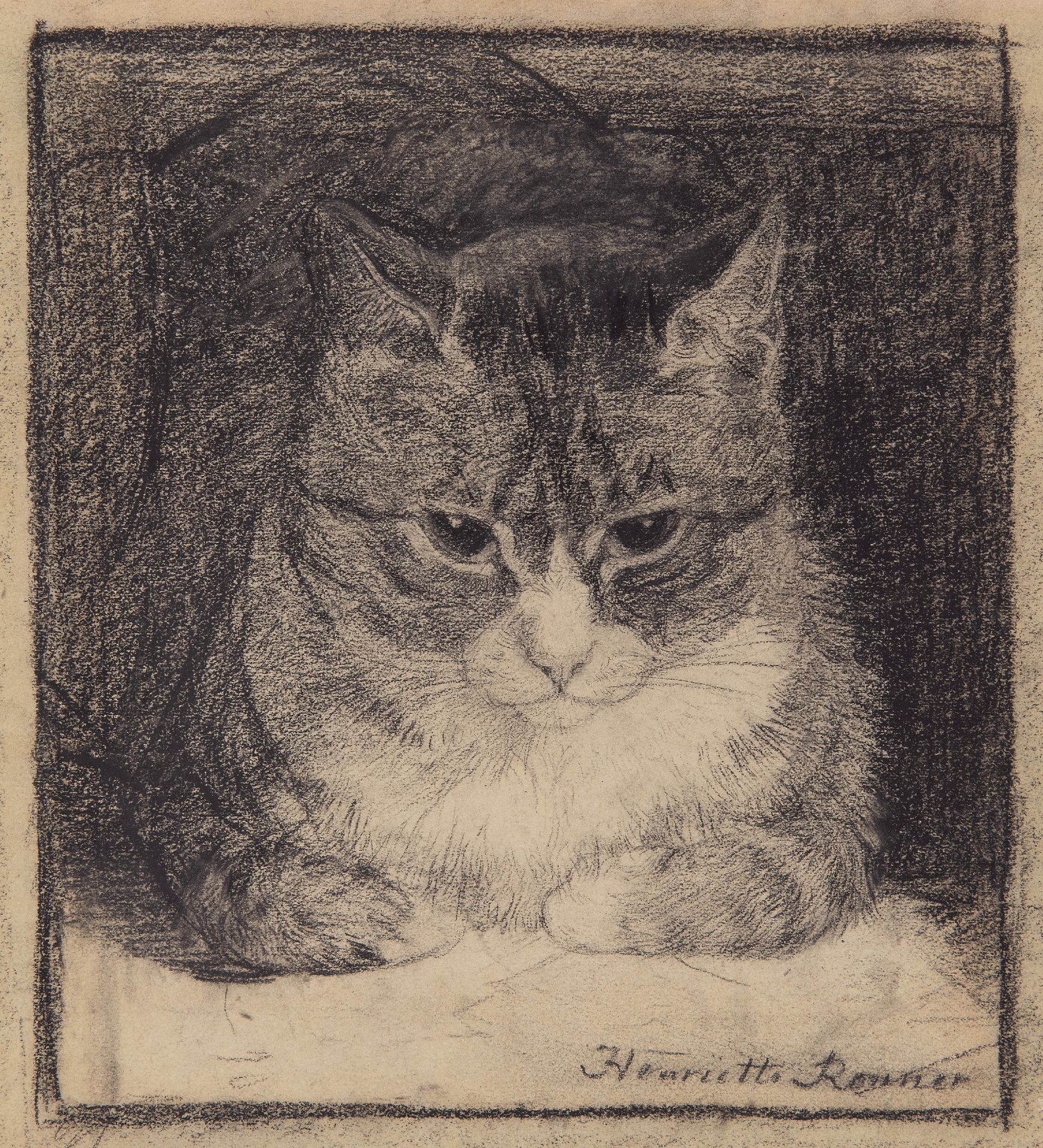 Henriette Ronner artwork • watercolour • drawing • previously for sale Portrait of a cat