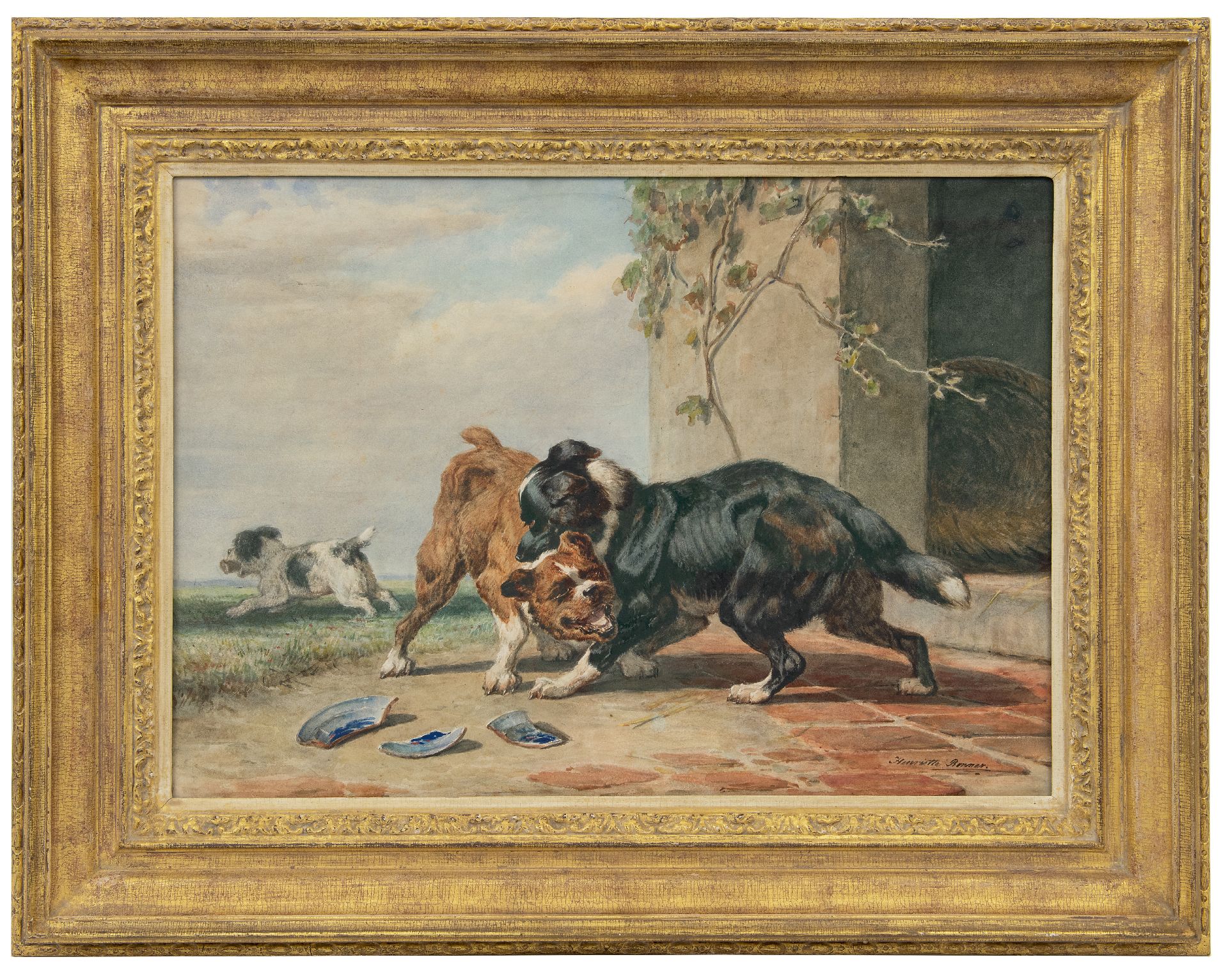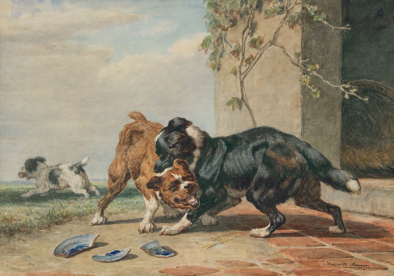 Henriette Ronner artwork • watercolour • drawing • for sale While two dogs are fighting for a bone...