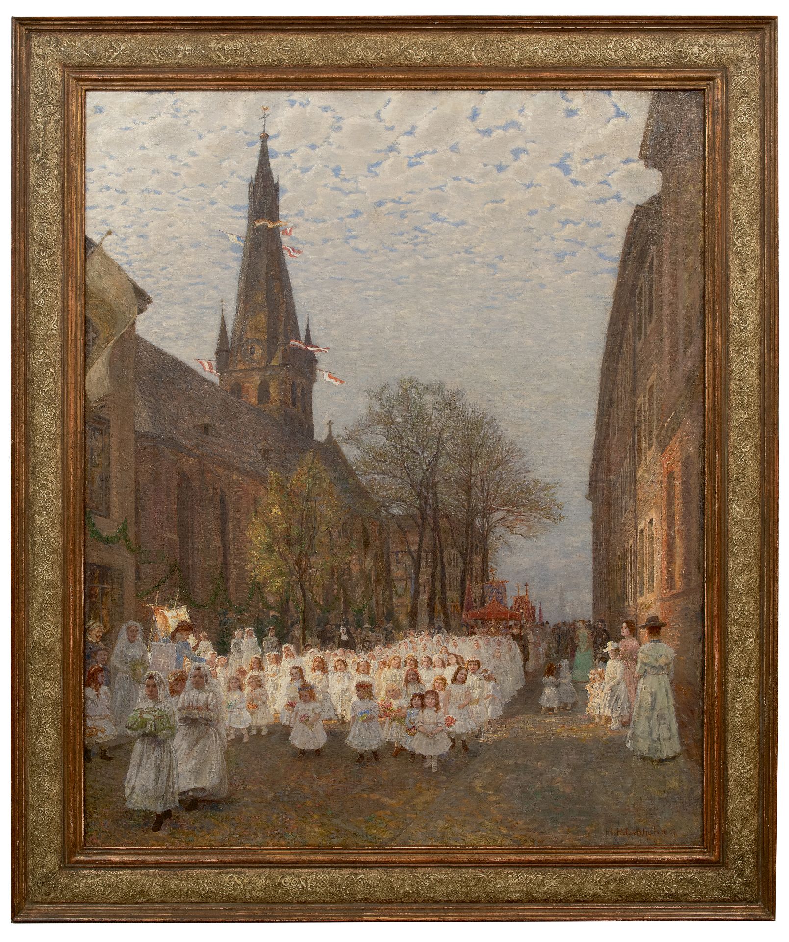 Hubert Ritzenhofen artwork • painting • for sale Procession by the church of St. Lambertus in Düsseldorf