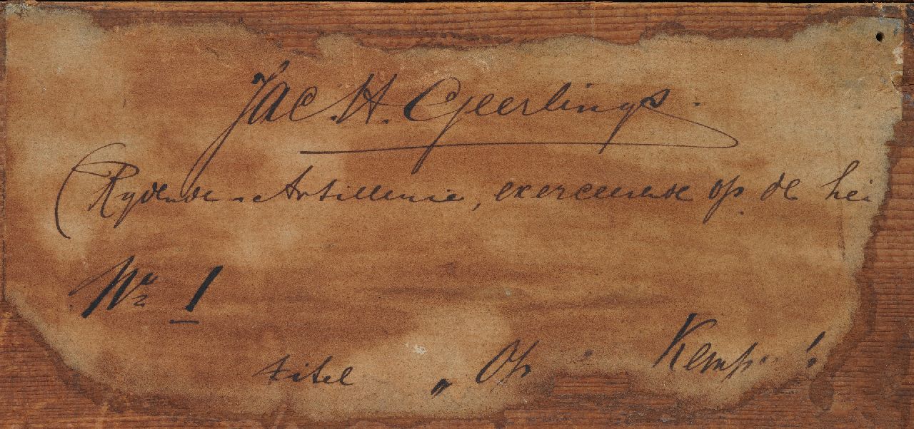 The Dutch impressionist Jacob Hendrik Geerlings was educated at the Rijksacademie in Amsterdam under August Allebé. He painted landscapes with horses and figures, but became especially known as a painter of horse artillery hussars and Yellow Riders on the heath. Geerlings moved several times, but lived on the Veluwezoom in Rheden and Arnhem for a longer period of time. He probably also got inspiration for many of his landscapes there. A few portraits and intimate, atmospheric interiors of the painter are also known.