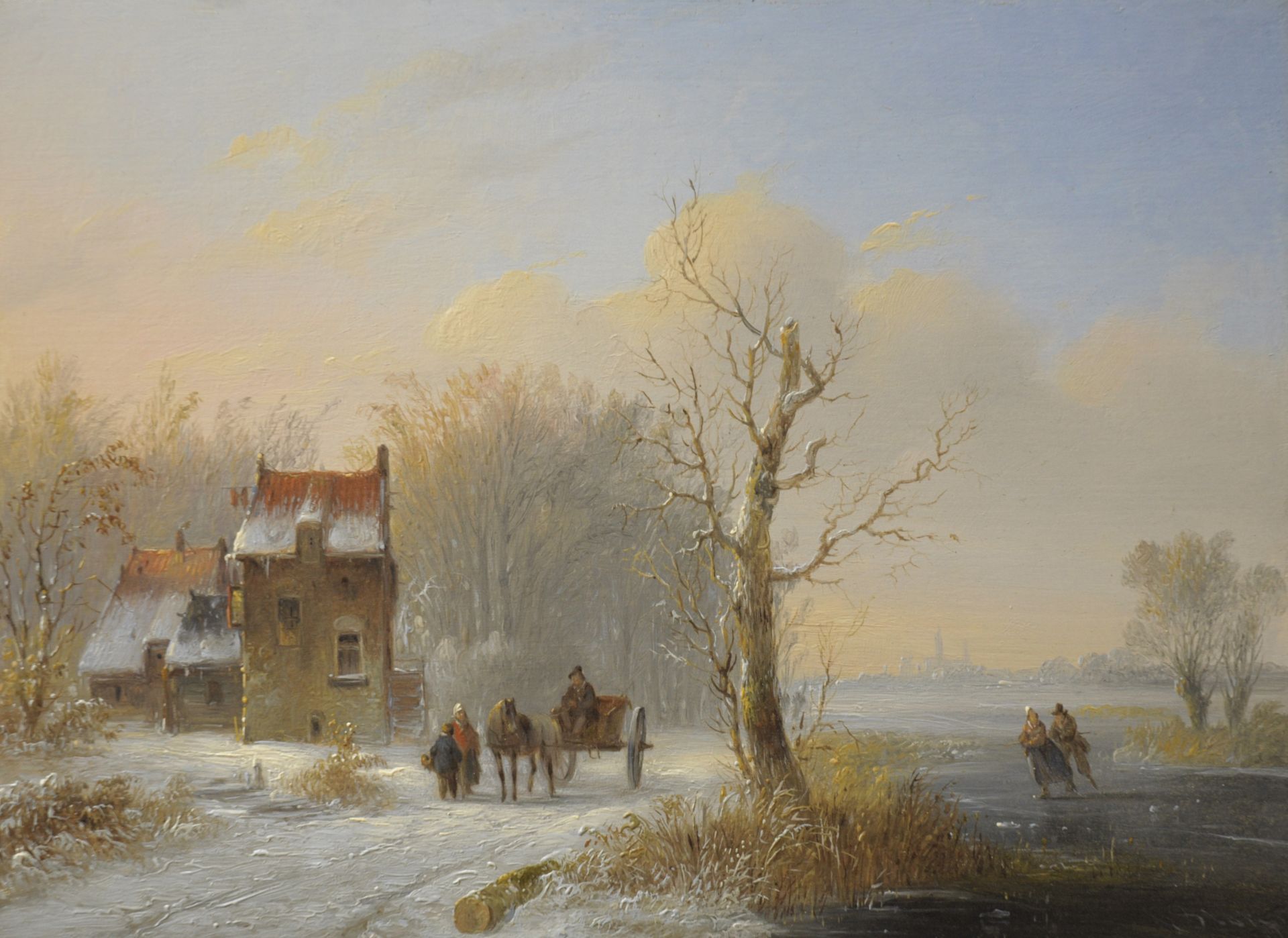 Winter scene with skaters and horse cart