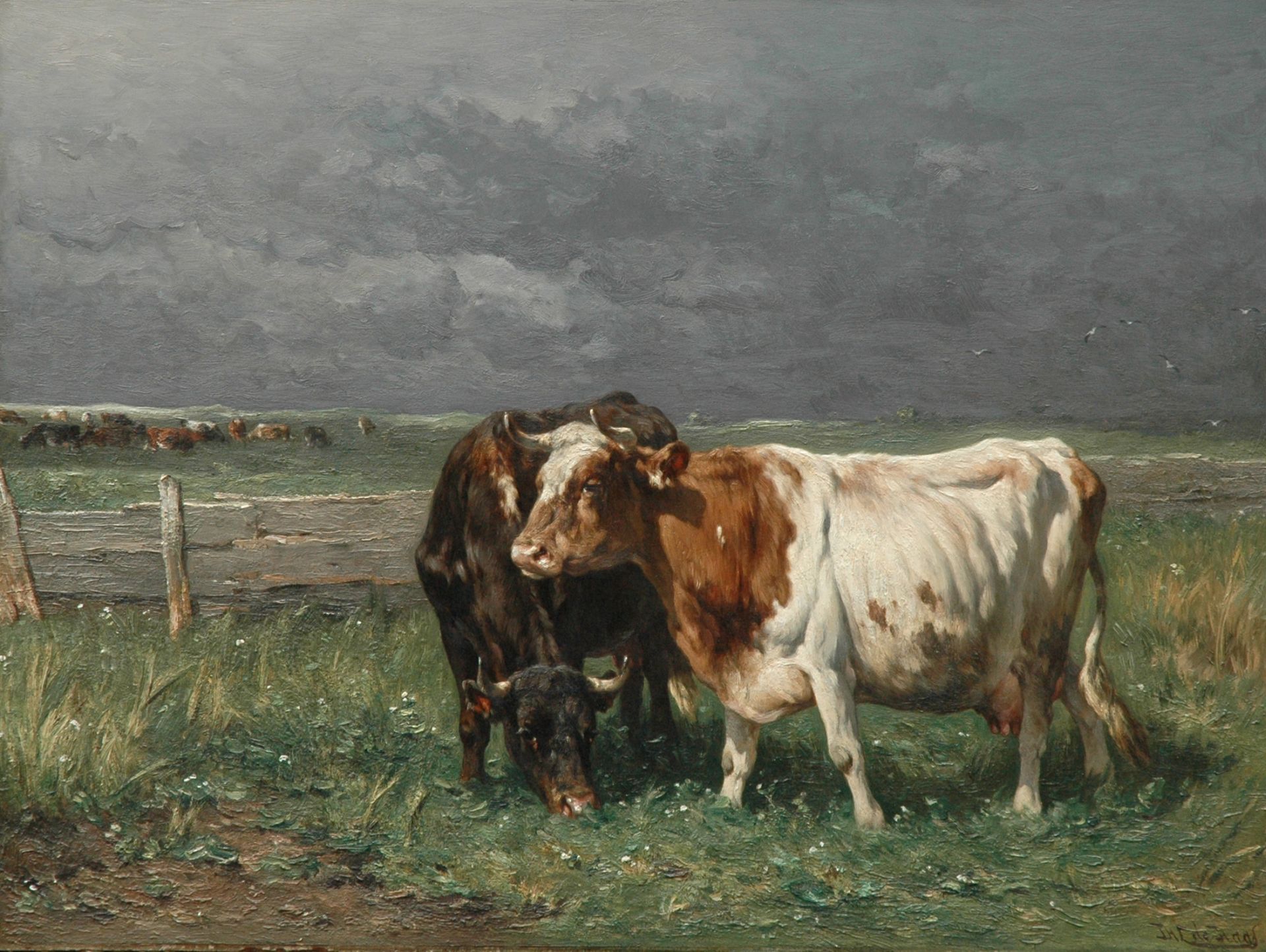 Jan de Haas artwork • painting • previously for sale Cattle in a meadow