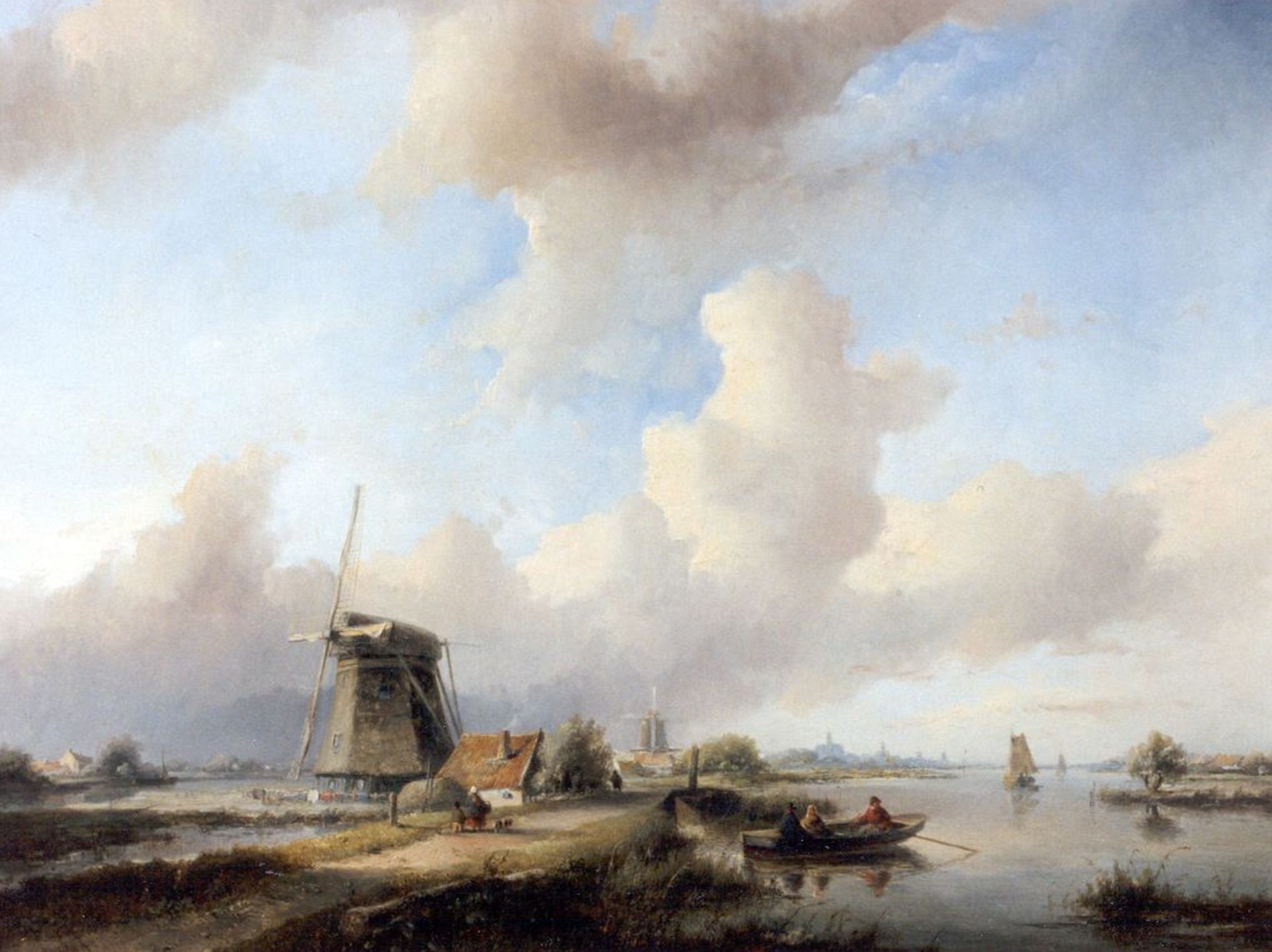 Jan Jacob Spohler artwork • painting • previously for sale An extensive river landscape with figures by a windmill
