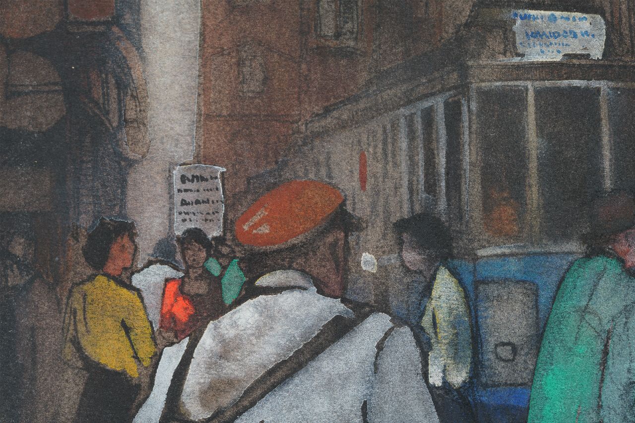 Jan Rijlaarsdam artwork • watercolour • drawing • for sale The Leidsestraat in Amsterdam