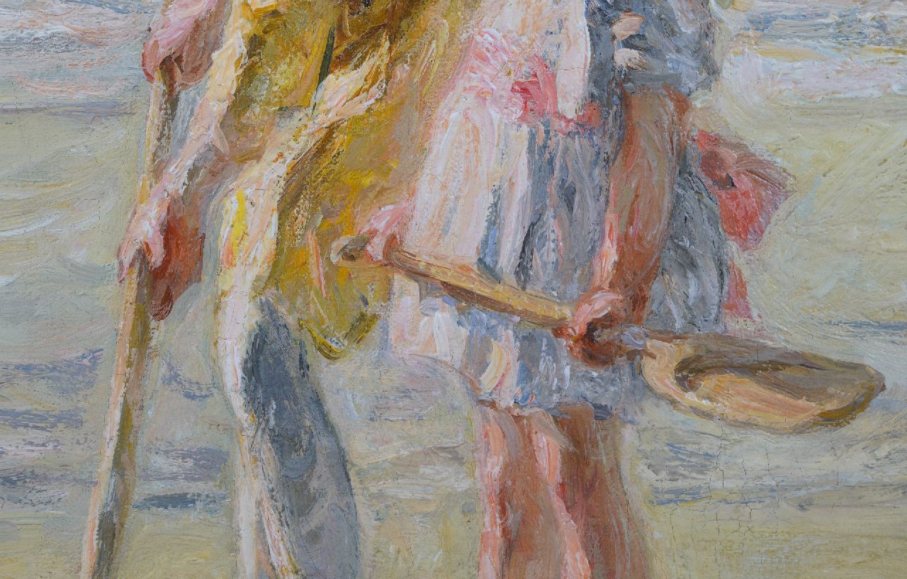 Jan Zoetelief Tromp painted most of his work in the towns of Blaricum and Katwijk. Agrarian life in Blaricum first captured his interest in 1899, and in 1905 he ‘discovered’ Katwijk, where he subsequently spent summers with his family and finally settled permanently in 1914. Tromp painted the daily lives of the fishing community, and especially pictures with children, showing them playing on the beach, shepherding goats or returning from the dunes. These scenes are all idyllic and resonate with a familial contentment that presumably reflected his own. Being both deaf and somewhat introverted, Tromp preferred to use his own wife and children as models.