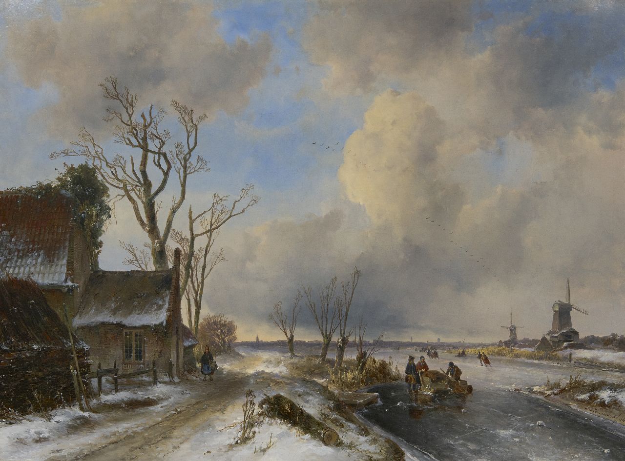 Johan Barthold Jongkind artwork • painting • previously for sale Skaters on a frozen river
