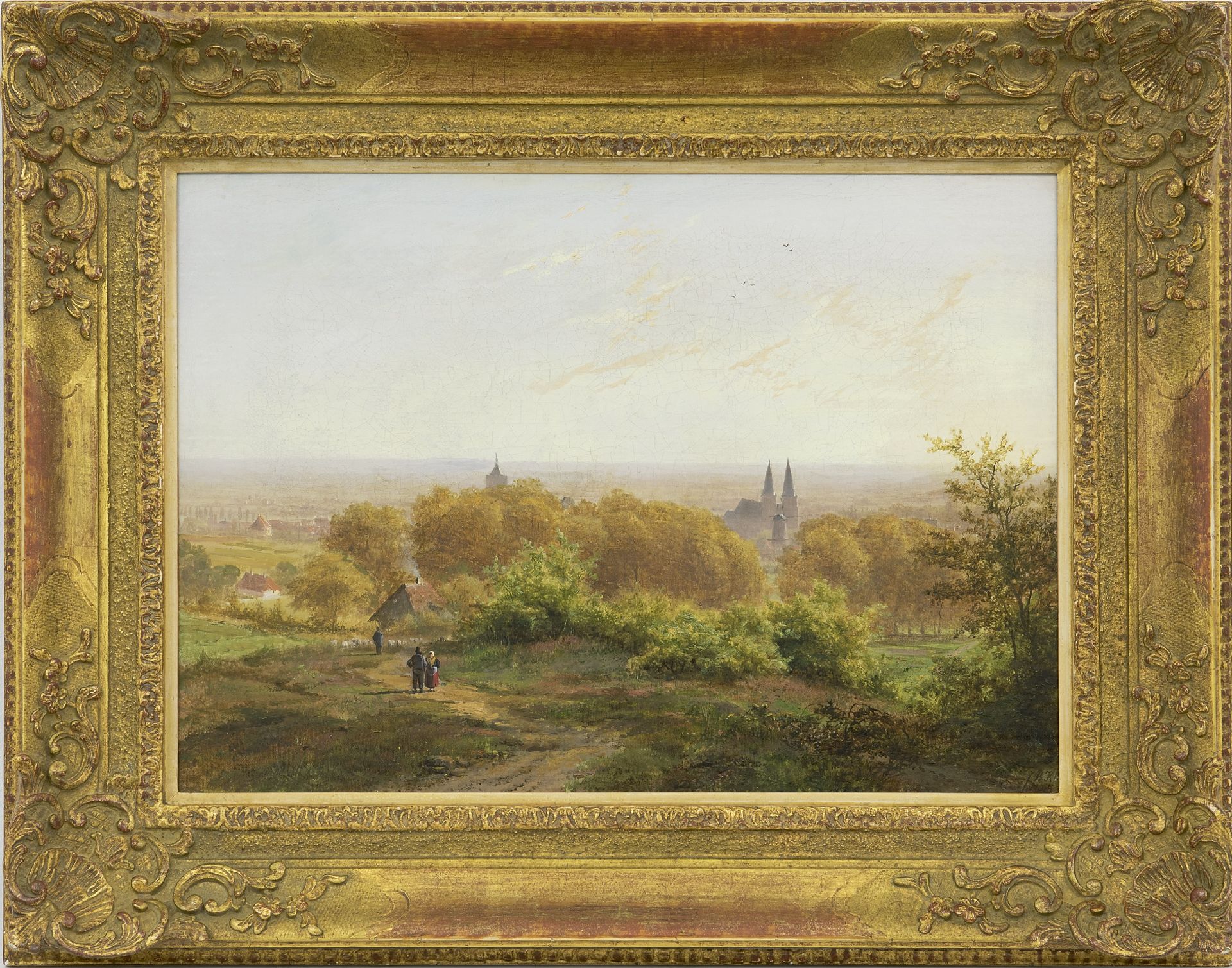 Klombeck was one of B.C. Koekkoek’s most famous and talented pupils. He painted dreamy, romantic landscapes and woodland scenes with cattle and occasional figures on a dirt track, a river or valley in the distance. He drew inspiration for his paintings from the unspoiled nature around Kleve, the place where he was born and lived. The Belgian painter Eugène Verboeckhoven, with whom Klombeck worked from 1860 on, often added the cattle in his paintings.