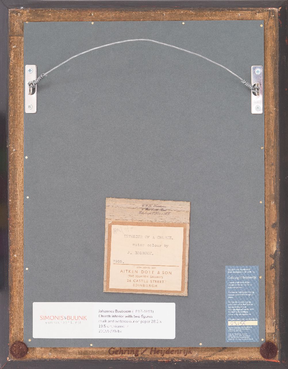 Johannes Bosboom was born in The Hague in 1817 and became apprenticed to the cityscape painter Bart van Hove. He early chose to specialise in church interiors, encouraged in this by the praise he received from his contemporaries. His watercolours and paintings depict hushed church interiors, populated by figures in 17th century dress. As a Hague School artist, he sought to convey the impressions such buildings made on him. At the same time he drew inspiration from the light and atmosphere in the works of the 17th century painters Rembrandt and Emanuel de Witte.