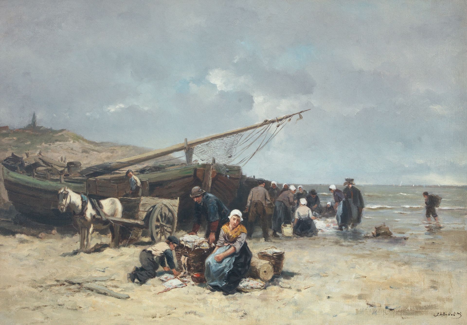 Johannes Marius ten Kate artwork • painting • for sale Selling fish on the beach of Scheveningen