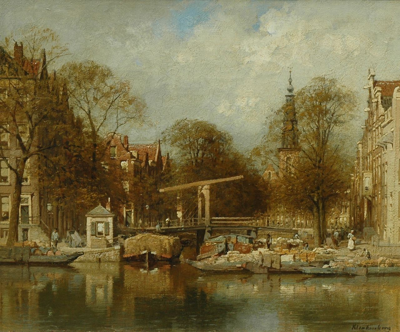 J.C.K. Klinkenberg, a pupil of J.H.L. Meijer and C. Bisschop, specialized in painting historic city views, often sundrenched and reflected in the water of a canal or inland harbour. His contemporaries admired the effect of sunlight in his paintings: a strong, dazzling light that powerfully lit up the red bricks and white sandstone of the old Dutch gables. Countless Dutch cities were immortalised by him. The topographical representation and impressionist manner with which Klinkenberg recorded townscapes give him a worthy place in the rich tradition of Dutch architecture painting.