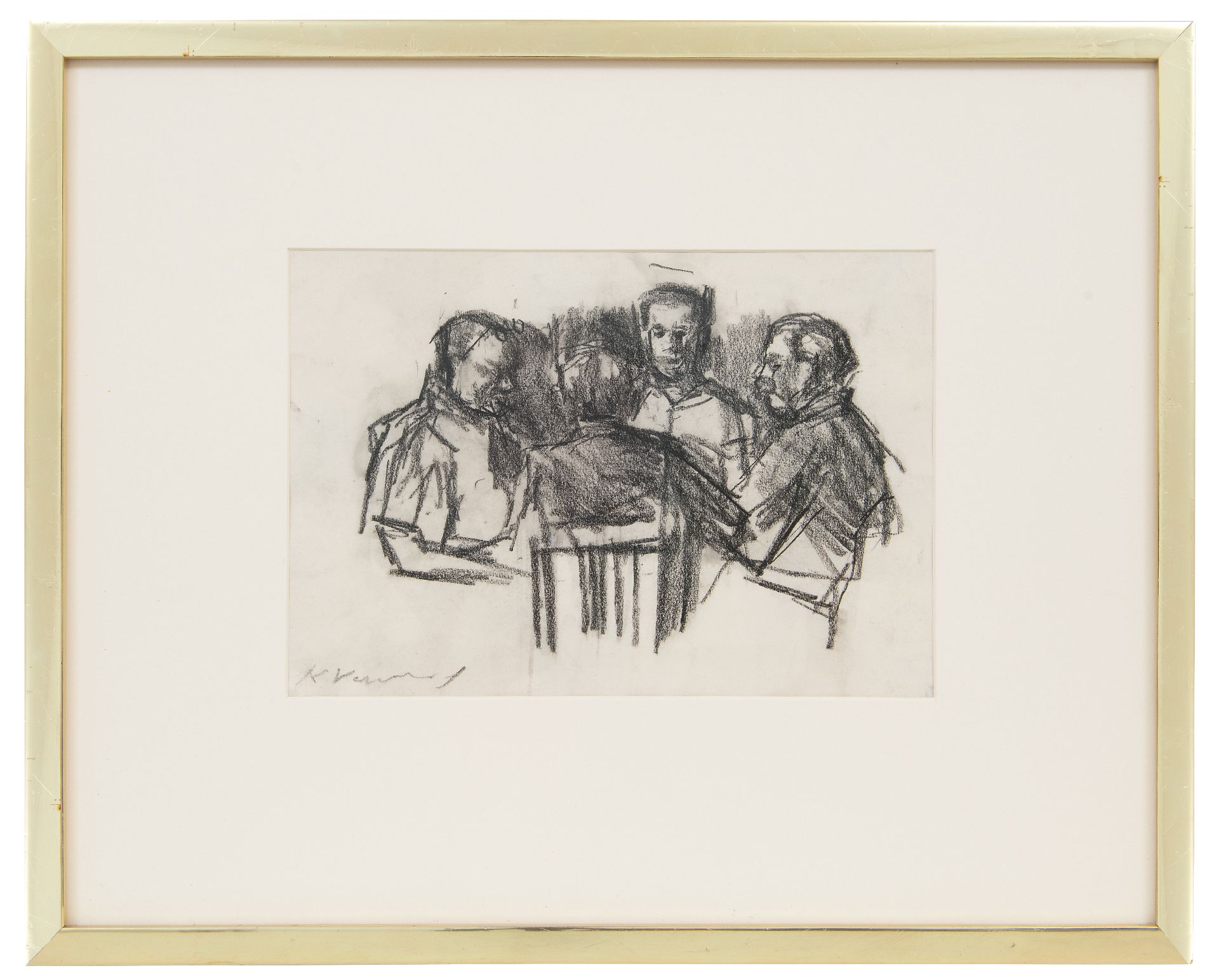 Kees Verwey artwork • watercolour • drawing • for sale Men playing cards