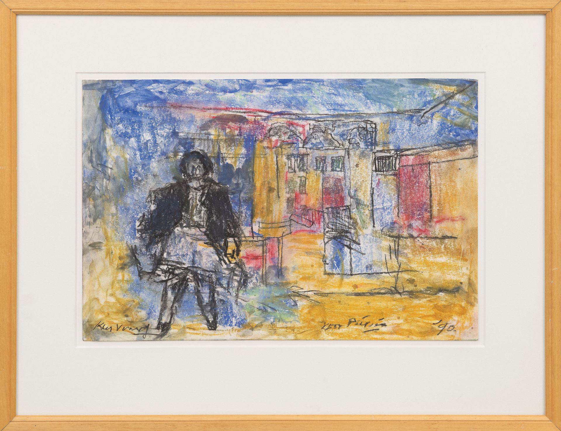 Kees Verwey artwork • watercolour • drawing • for sale Woman in a street