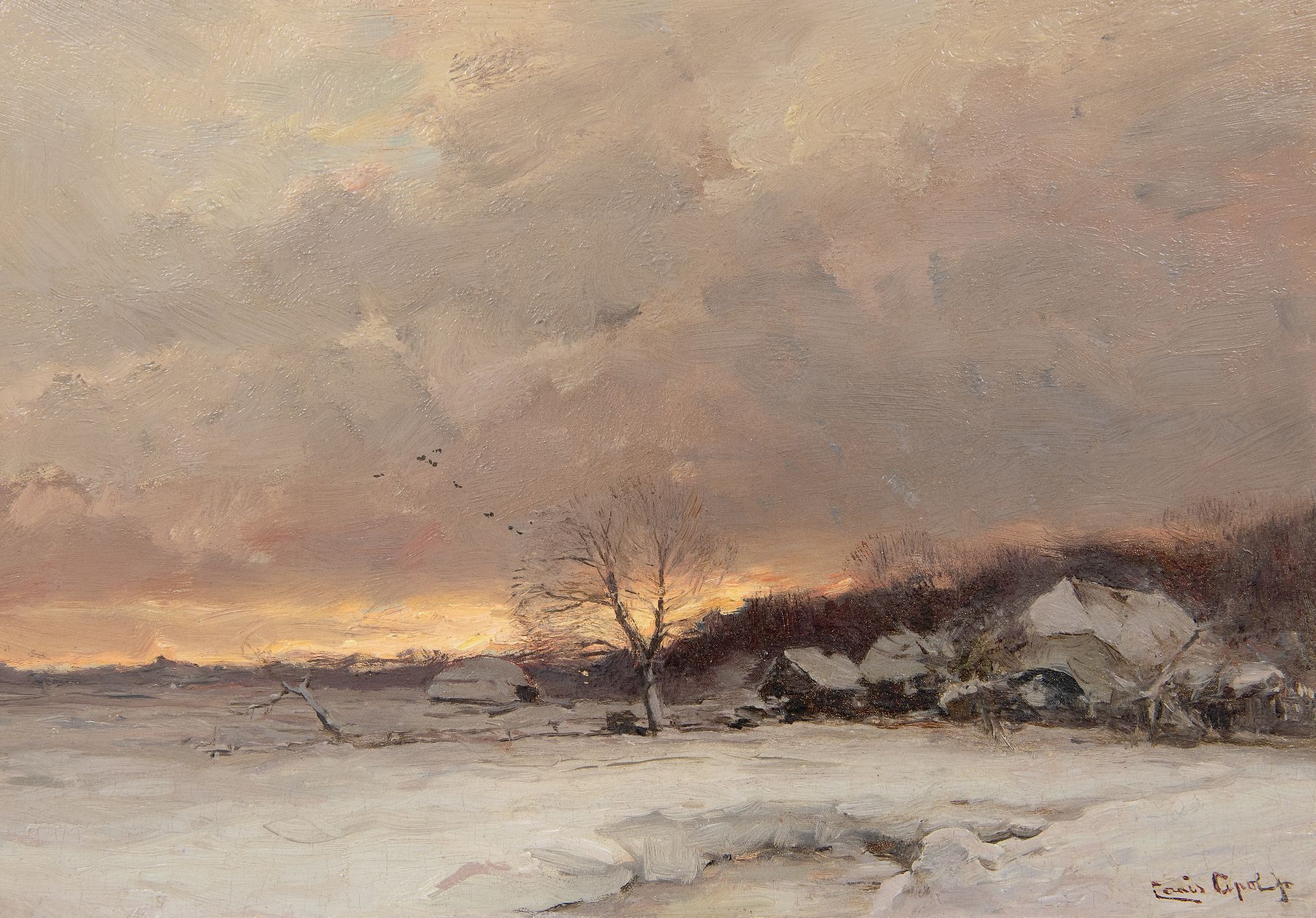 Louis Apol artwork • painting • previously for sale Winter landscape at sunset